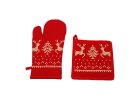 bavlněná, s magnetem, s kapsou | Rozměr 18 x 32 cm + 18 x 25 cm Z jedné strany červená a z druhé béžová Chňapka s magnetem Podložka s kapsou