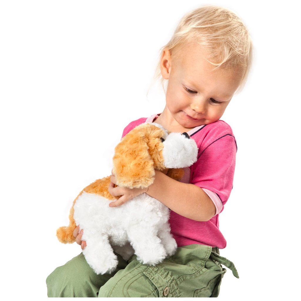 Roztomilé štěňátko, které prosí, běhá, čmuchá, umí si sednout, lehnout, panáčkovat a štěkat. Štěňátko začne štěkat a pohybovat se po zvukovém signálu. Velikost štěňátka 15 cm.