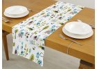 z recyklované bavlny, 33 x 130 cm | oboustranné prostírání rozměr 33 x 130 cm z jedné strany fialový s bílým puntíkem a z druhé fialové a bílé květy z recyklované bavlny