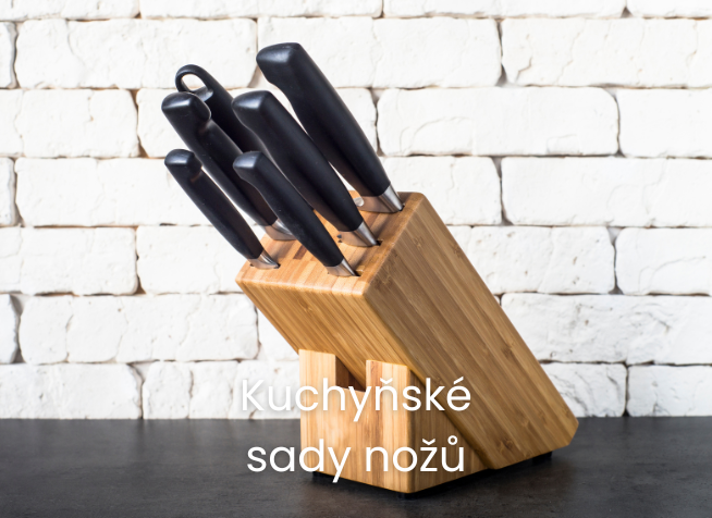Sada 5 kvalitních nožů s nůžkami. Vše uložené v praktickém stojanu.