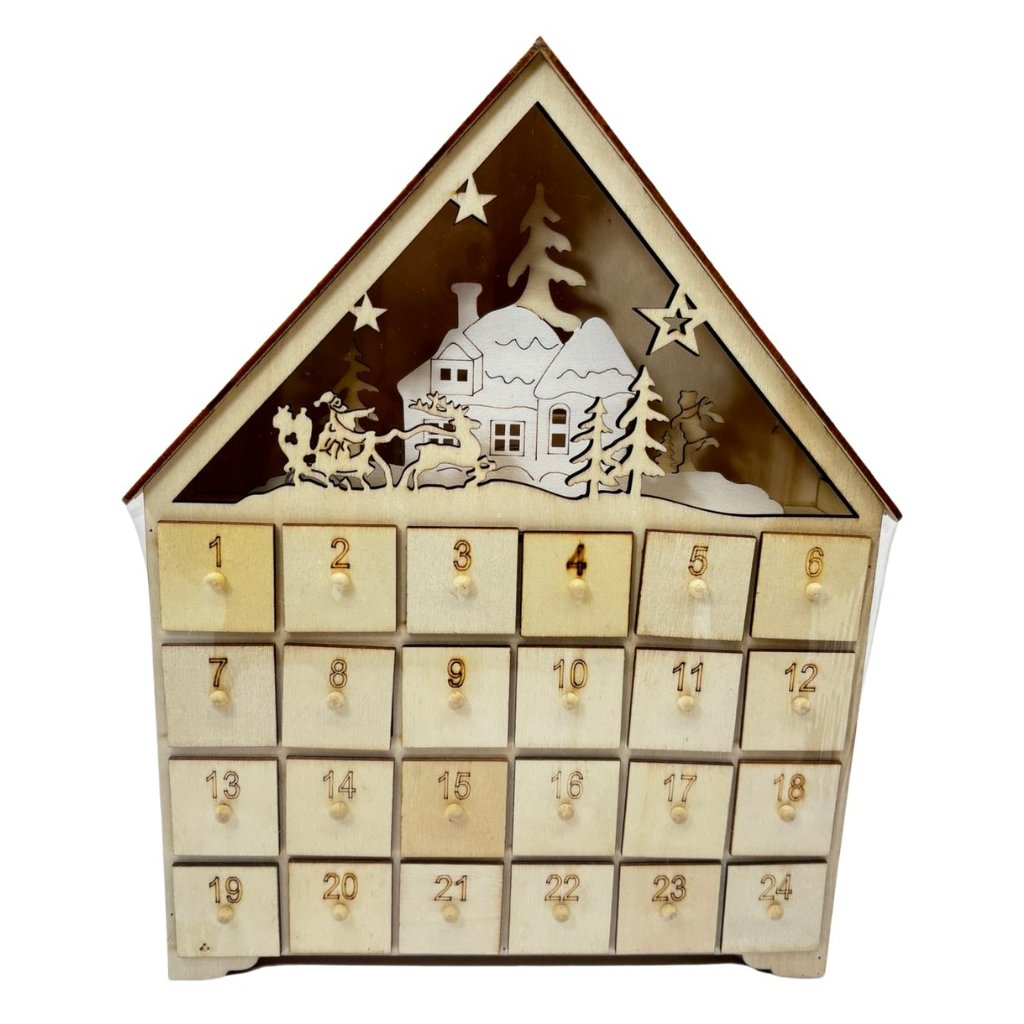 Adventní kalendář vytvoří tu pravou kouzelnou vánoční atmosféru. Obsahuje 24 okének, do kterých můžete vložit vašim dětem sladkosti a jiné drobné dárečky. Každý den budou mít překvapení. S adventním kalendářem ve tvaru chaloupky je čekání na Vánoce zábava.