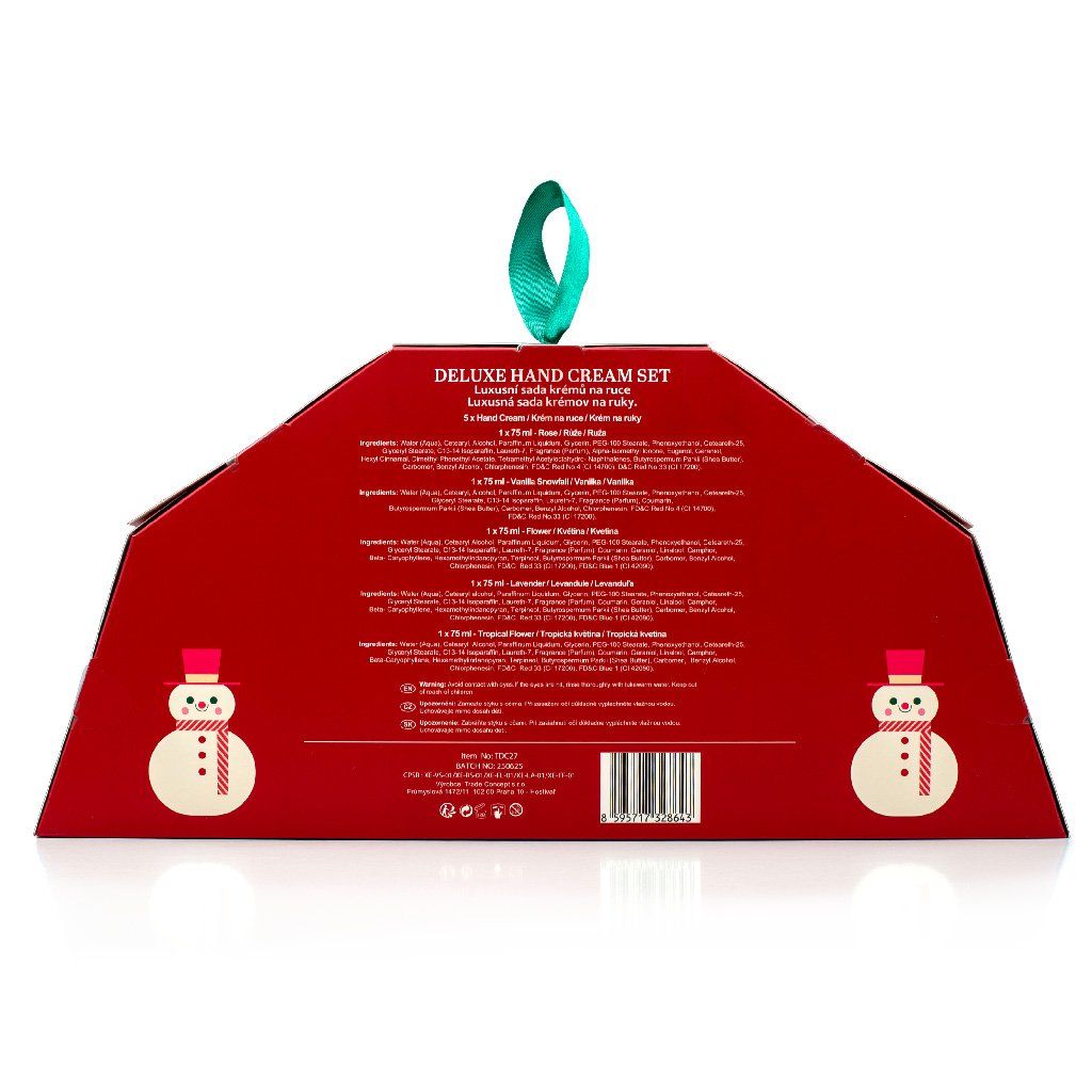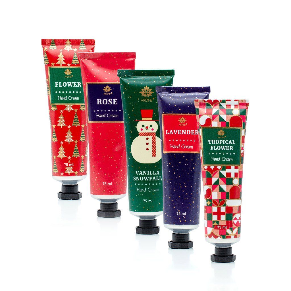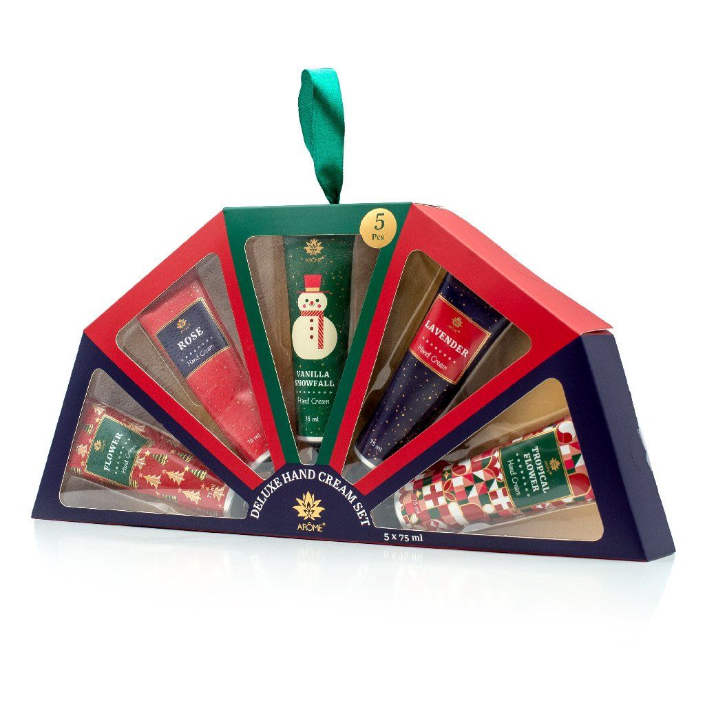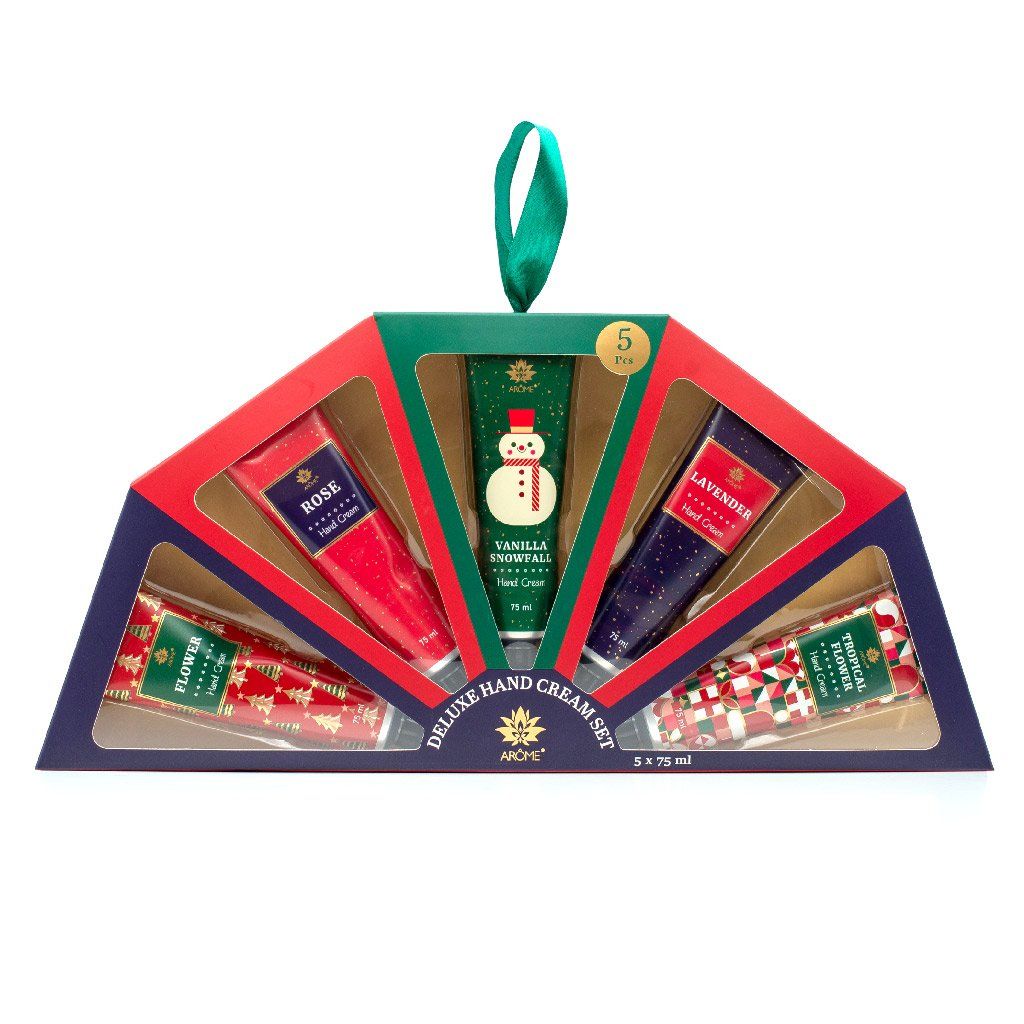 Luxusní dárková sada ARÔME Deluxe Hand Cream Set potěší všechny, kdo milují hebké ruce a jemné vůně. Obsahuje pět krémů na ruce v krásném vánočním balení, které spojuje hravý design se smyslnými vůněmi květin, vanilky a zimních tónů. Každý krém má lehkou, výživnou texturu, která se rychle vstřebává a zanechává pokožku hydratovanou, hebkou a provoněnou.