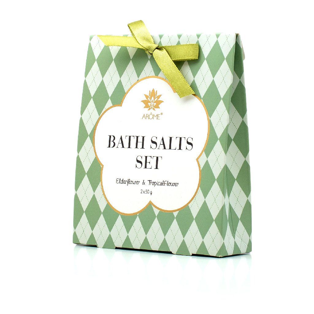 Voňavá sada koupelových solí ARÔME Elderflower & Tropical Flower promění běžnou koupel v exotický zážitek. Kombinace bezinky s jemně nasládlým a osvěžujícím aroma a tropických květin s výraznou vůní dodá každé lázni nádech luxusu. Díky obsahu glycerinu zůstává pokožka po koupeli hebká, vyživená a příjemně provoněná. Elegantní zelené balení se stuhou z ní činí ideální drobný dárek pro každou příležitost.