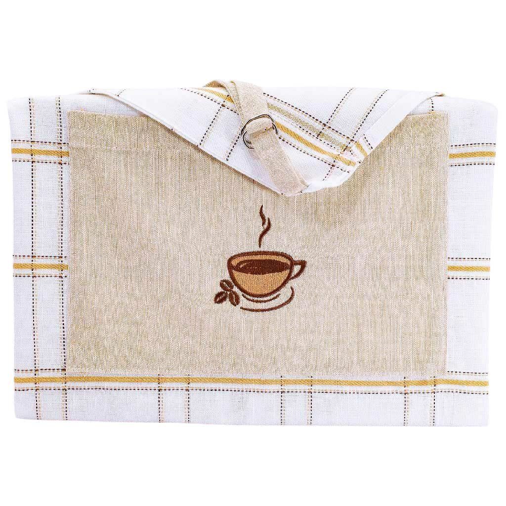 Kuchyňská zástěra, Béžové káro, výšivka Káva ARÔME HOME