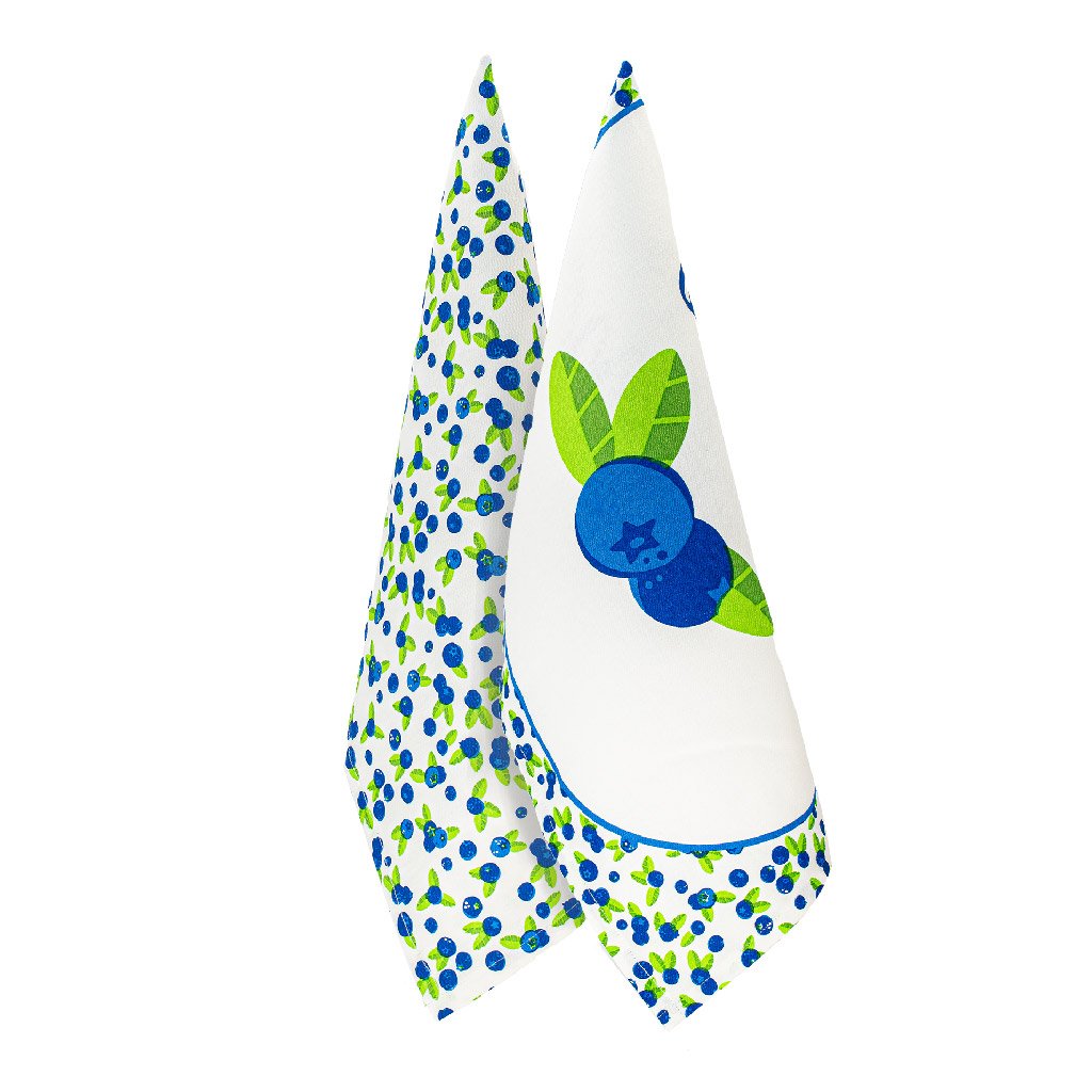 zástěra (60 × 80 cm), chňapka s magnetem (18 × 32 cm) a dvě utěrky (50 × 70 cm) - Stylový motiv borůvek – svěží, jemný a nadčasový design