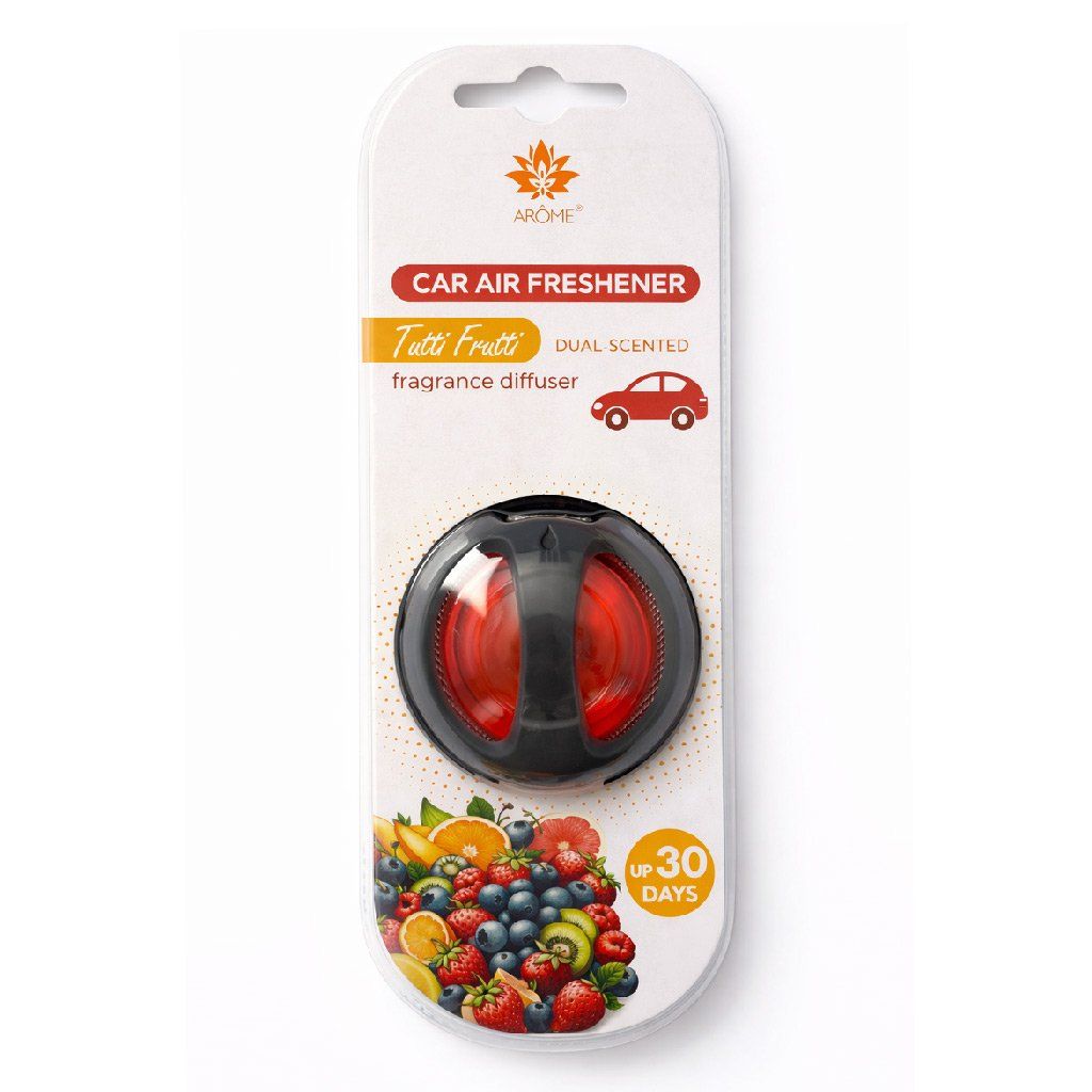 Proměňte každou jízdu v příjemně voňavý zážitek! ARÔME osvěžovač do auta Tutti Frutti přináší sladkou a svěží ovocnou vůni, která naplní interiér vašeho vozu energií a dobrou náladou. Stylový difuzér se snadno upevní do ventilace díky klipu a vůně se postupně uvolňuje až po dobu 30 dní, takže si dlouho užijete příjemný voňavý komfort. Silu vůně můžete regulovat.