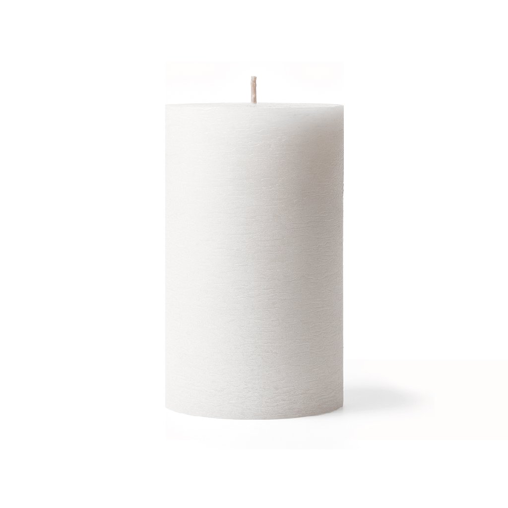 - Klasická svíčka ve tvaru válce s rustikálním vzhledem.