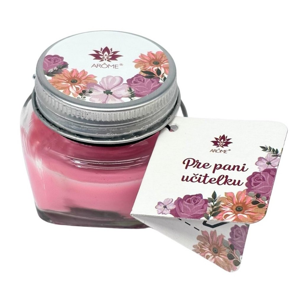 Máme pro vás ideální dárek či pozornost pro oblíbenou paní učitelku. Vonná svíčka ve skleněné dóze s víčkem a cedulkou so slovenským nápisem ,,Pre paní učiteľku".