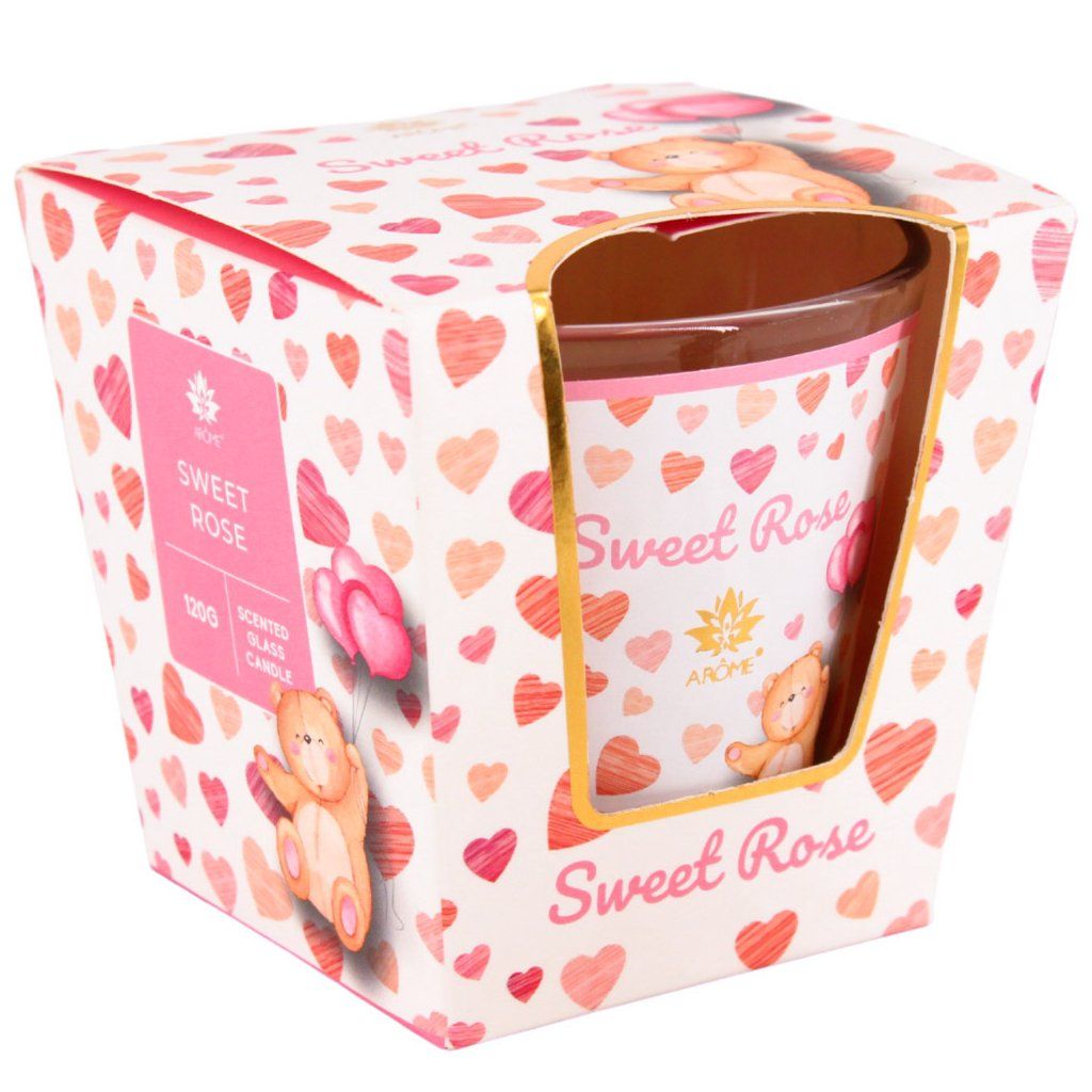 Baleno v barevné papírové krabičce. Vonná svíčka Sweet Rose může být skvělým dárkem.