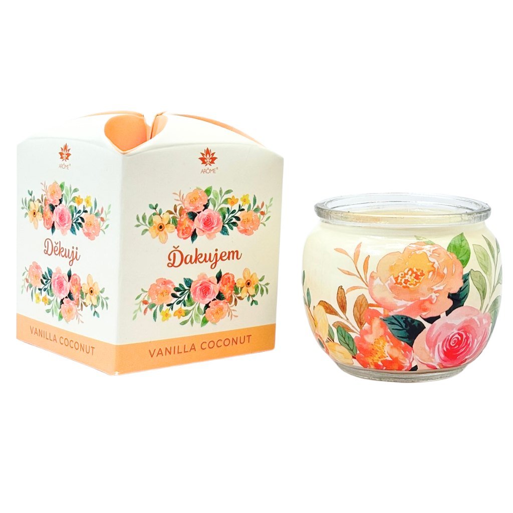 Pro útulnou večerní atmosféru a chvíle odpočinku je tu vonná svíčka ve skle s vůní vanilky a kokosu. Plamínek svíčky působí na naše smysly, je fascinující, uklidňující, voňavý i dekorativní.