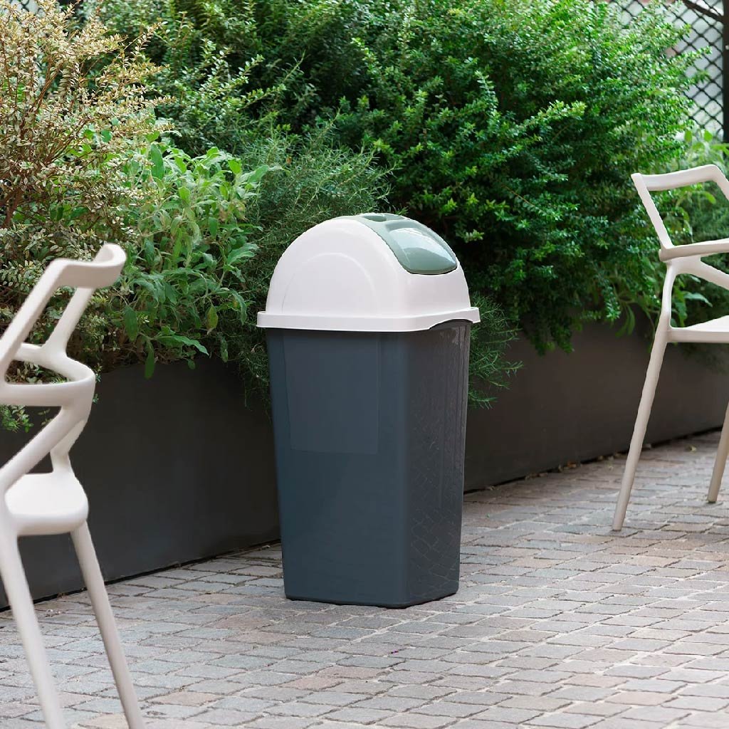 Praktické víko pomáhá hygienicky uzavírat obsah a zároveň udržuje čistý a nerušivý vzhled v interiéru.