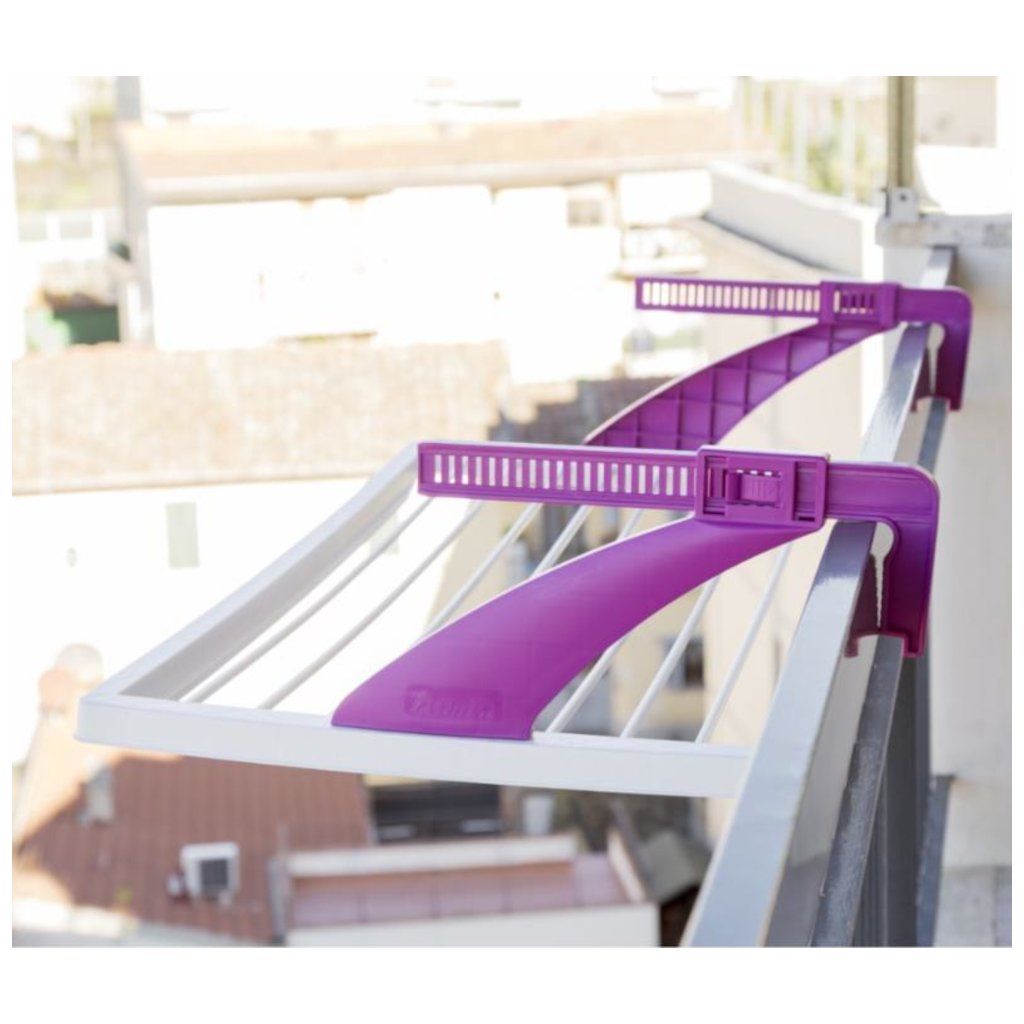 Skládací nastavitelný sušák BALCONE od italského výrobce BAMA zabírá malý prostor, ale poskytne vám až 10 m délky šňůr. Je vhodný na balkon, do koupelny či karavanu. Posuvné držáky od minimálně 3 do maximálně 20 cm umožní pevné uchycení na několika podpěrách.