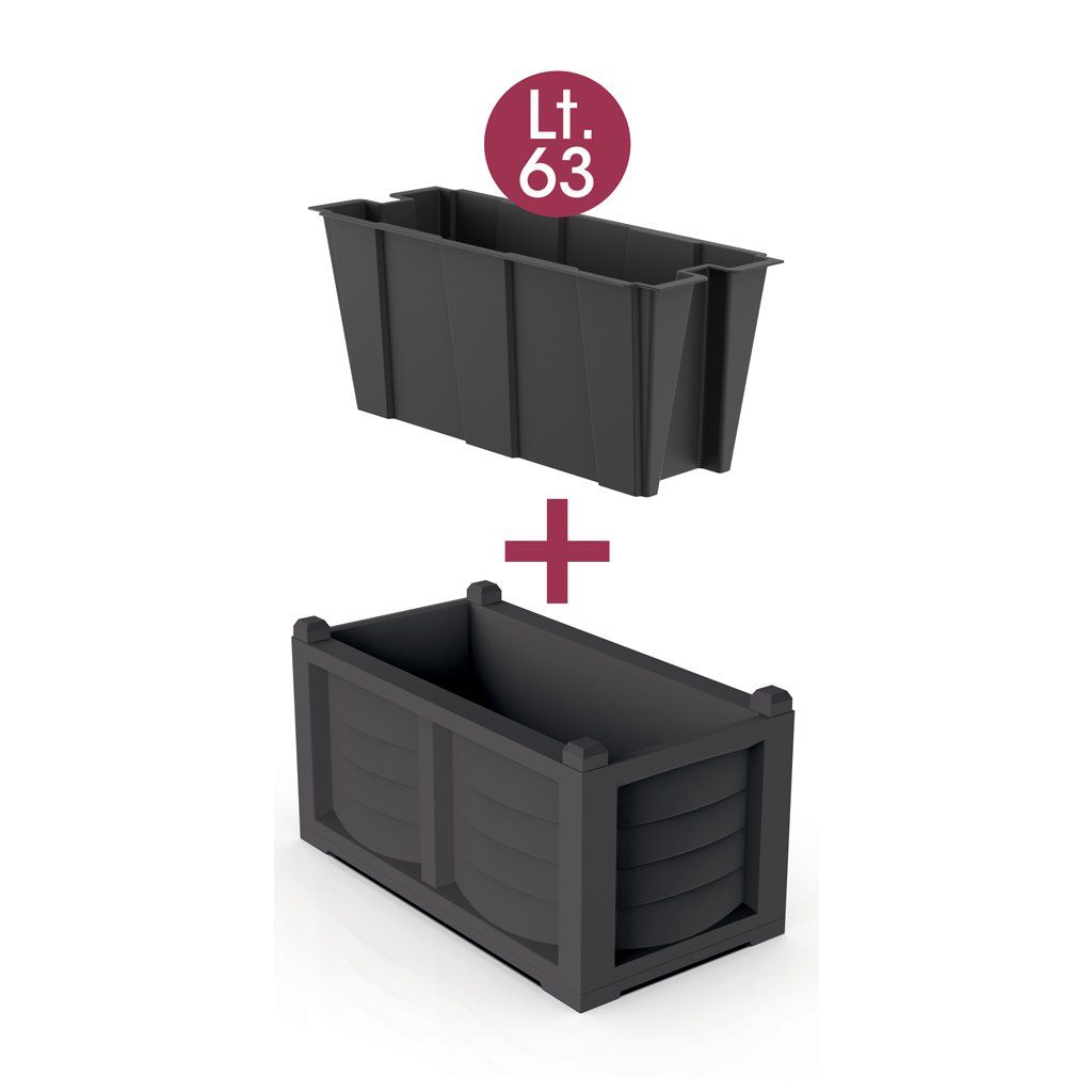 Na květiny a pro pěstování velkých rostlin ve venkovních i vnitřních prostorách nabízíme sestavu velkoobjemového truhlíku s vnitřní plastovou nádobou. Truhlík je elegantní, robustní a snadno sestavitelný bez použití nářadí. Povrchová úprava venkovního truhlíku vytváří velmi skutečný efekt dřeva. Vnitřní nádoba je snadno vyjímatelná, díky profilovaným bočním úchytům. Vyrábí italská firma BAMA.