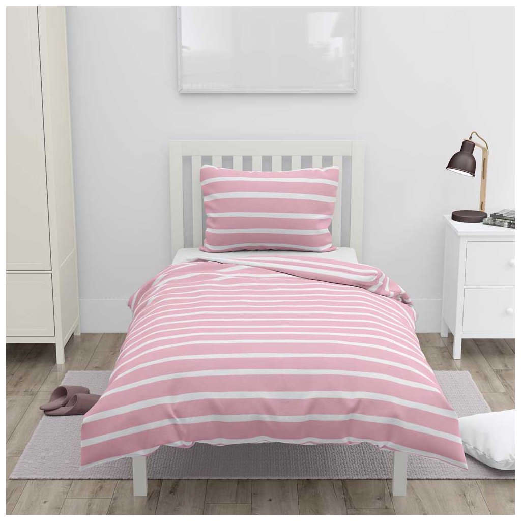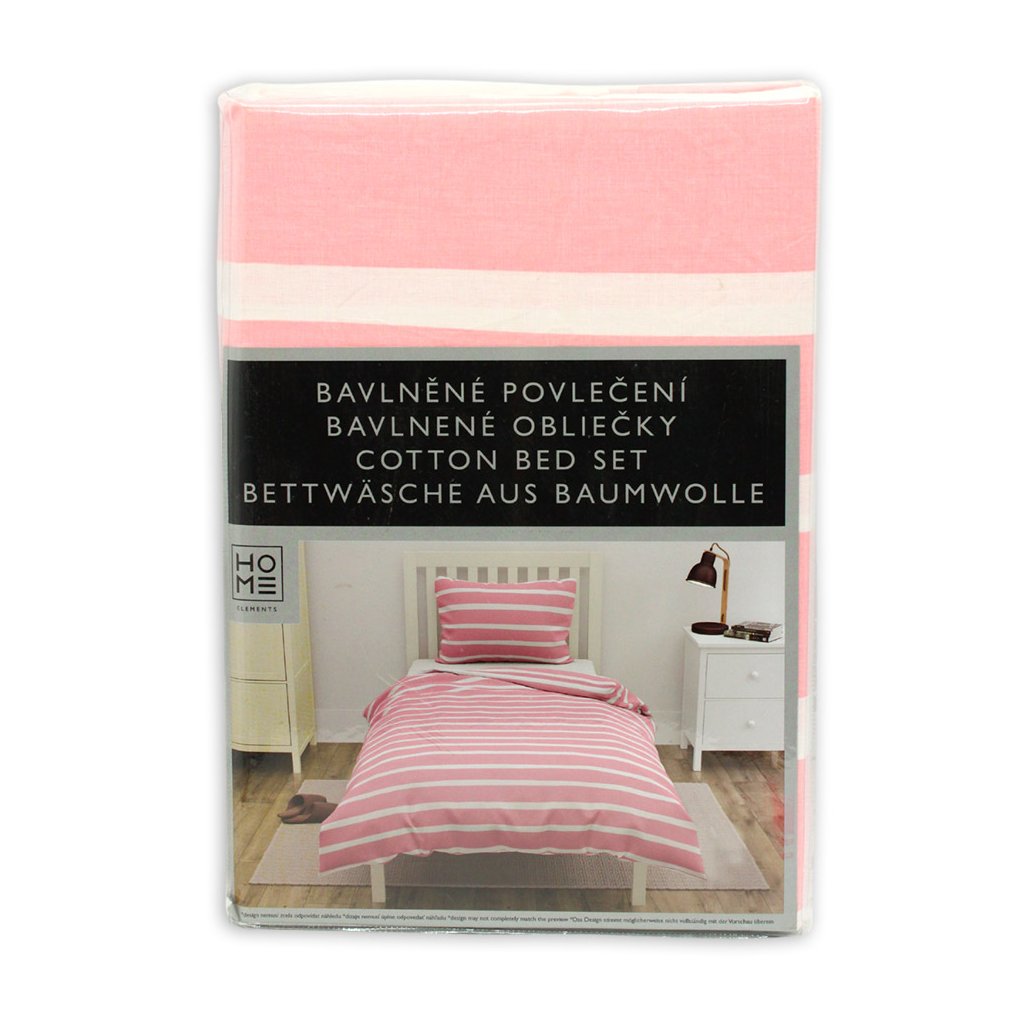 HOME ELEMENTS Bavlněné povlečení na jednolůžko, růžové a bílé proužky Home Elements