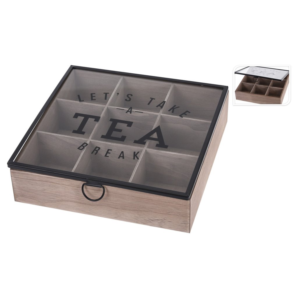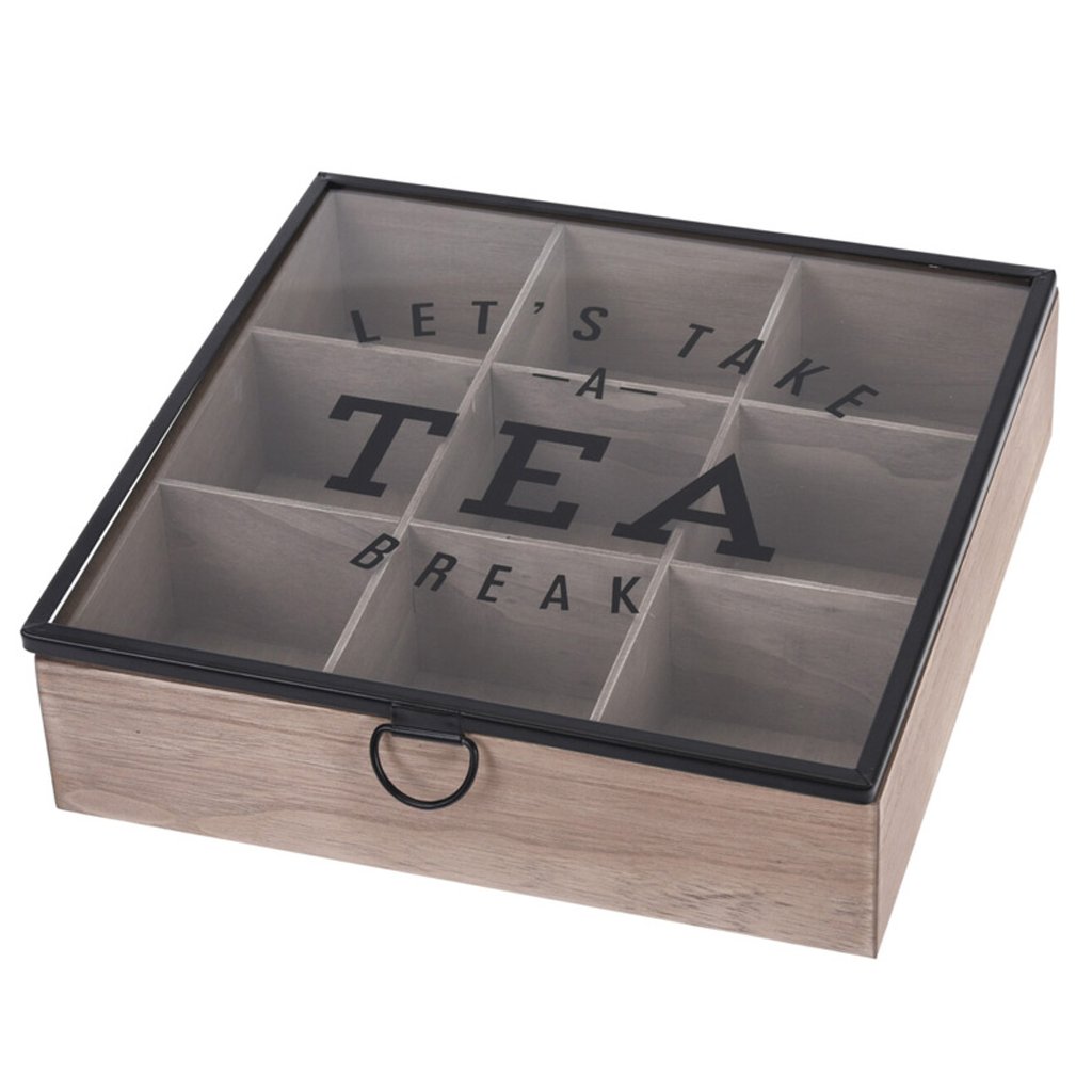 HOME ELEMENTS, Box na čaje s devíti přihrádkami, skleněné víko Home Elements