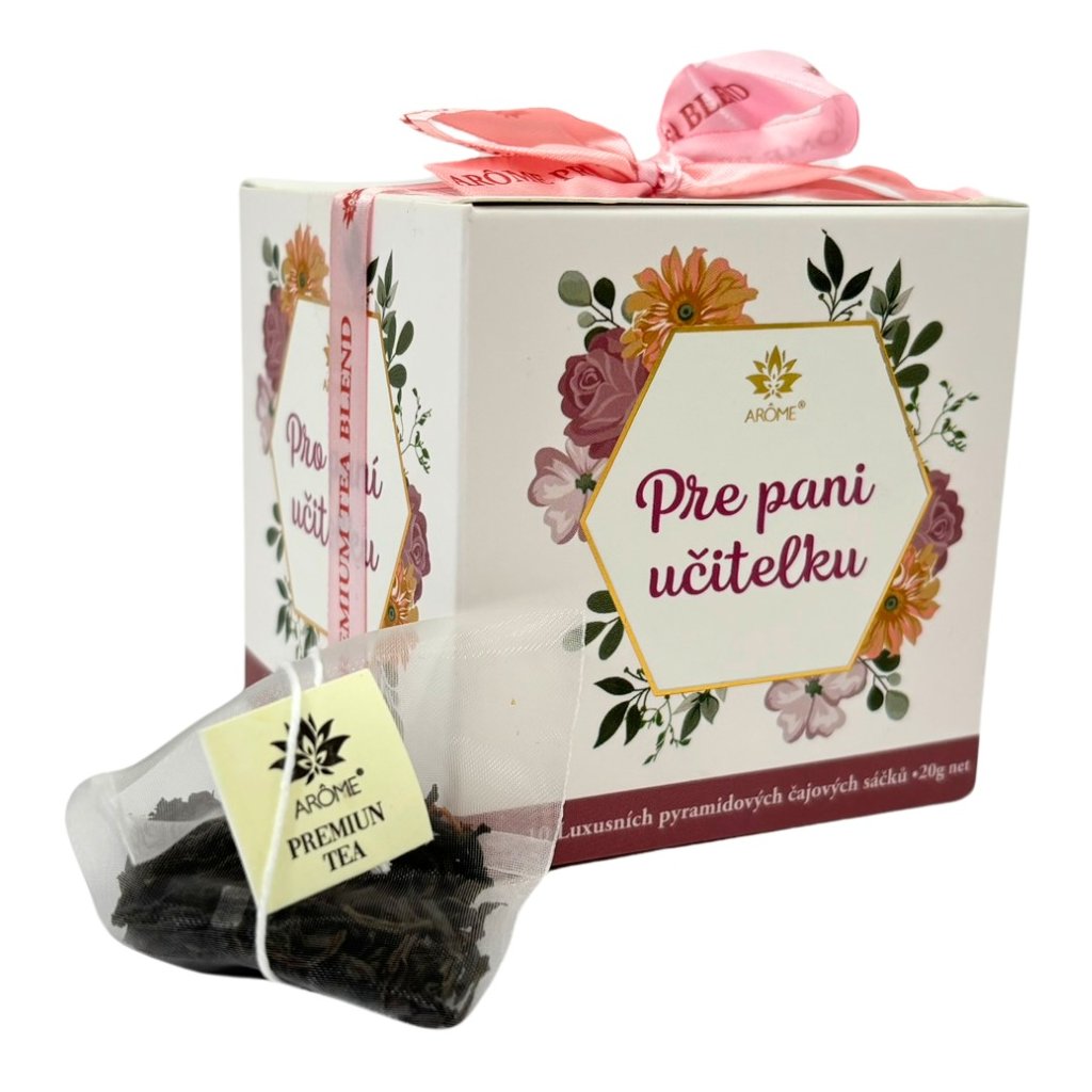 - Lahodný zelený čaj ze Sri Lanky. Dvě příchutě po 5 sáčcích - pomeranč a zázvor, růže a ibišek. V barevné papírové krabičce s nápisem Pro paní učitelku.