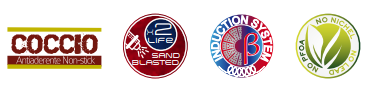 - Tělo pánve ze slitiny hliníku pokryté 6 vrstvým nepřilnavým keramickým povrchem COCCIO