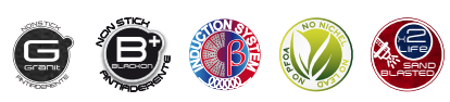 Pískované tělo zaručuje vynikající nepřilnavost, která prodlužuje životnost výrobku až 2x. Konstrukce okrajů dodává hrnci odolnost a zajišťuje těsné upevnění poklice. Díky indukčnímu dnu je výrobek vhodný pro všechny zdroje tepla.