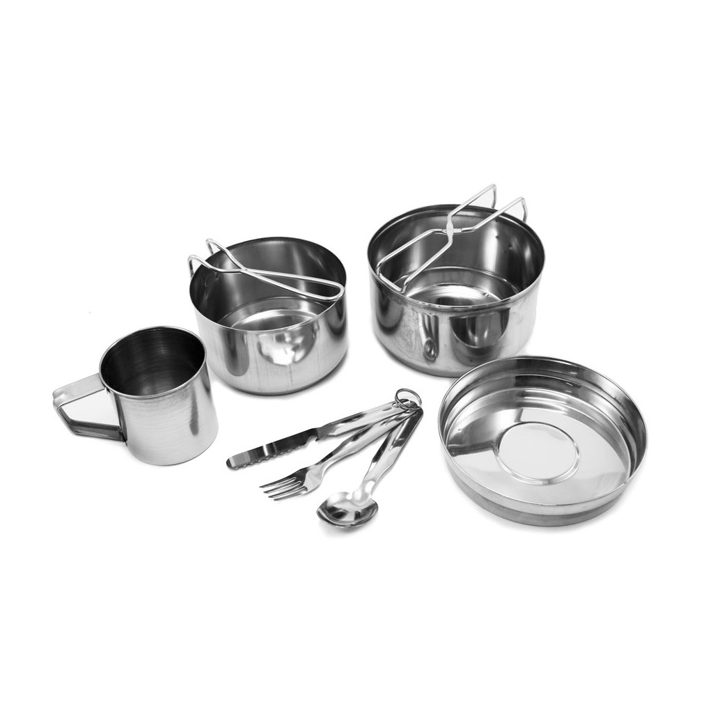 Sedmidílná kempingová jídelní souprava je ideální volbou pro malé i velké výpravy do přírody. Praktická sada tradičního ešusu z kvalitní nerezové oceli je doplněna o hrnek a příbor, takže máte vše potřebné pro stolování na cestách, při kempování, turistice nebo víkendových výletech.