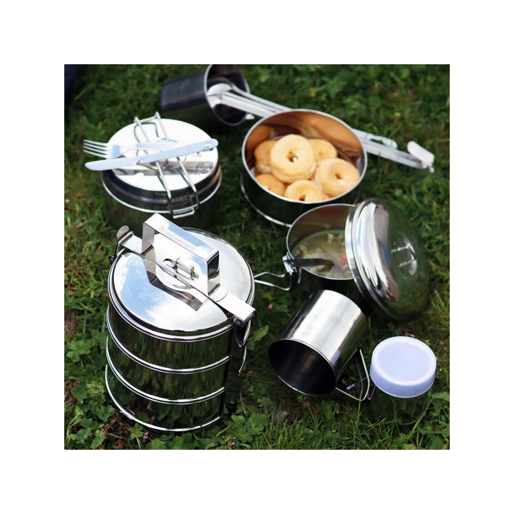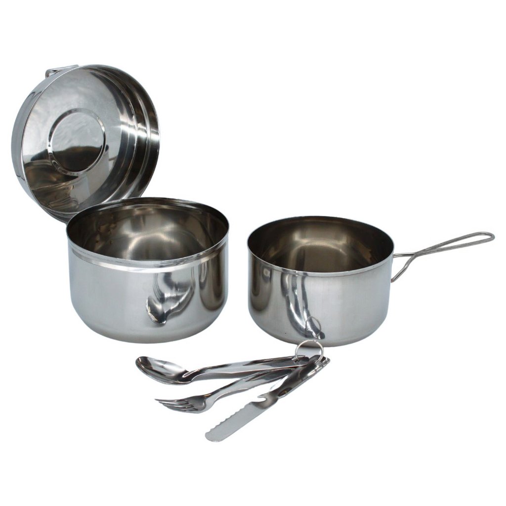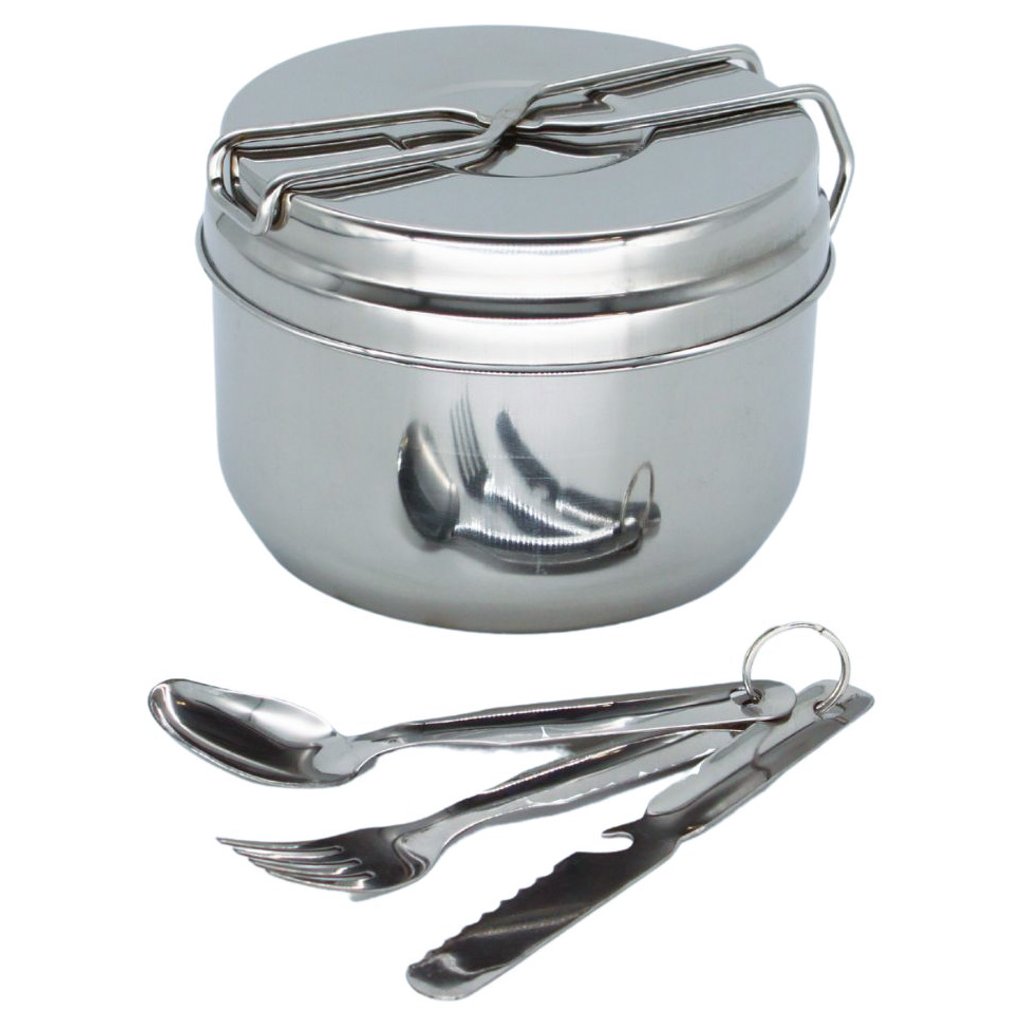 Šestidílná kempingová jídelní souprava je ideální volbou pro malé i velké výpravy do přírody. Praktická sada tradičního ešusu z kvalitní nerezové oceli je doplněna o příbor a poskytuje vše potřebné pro pohodlné stolování při kempování, turistice nebo výletech.
