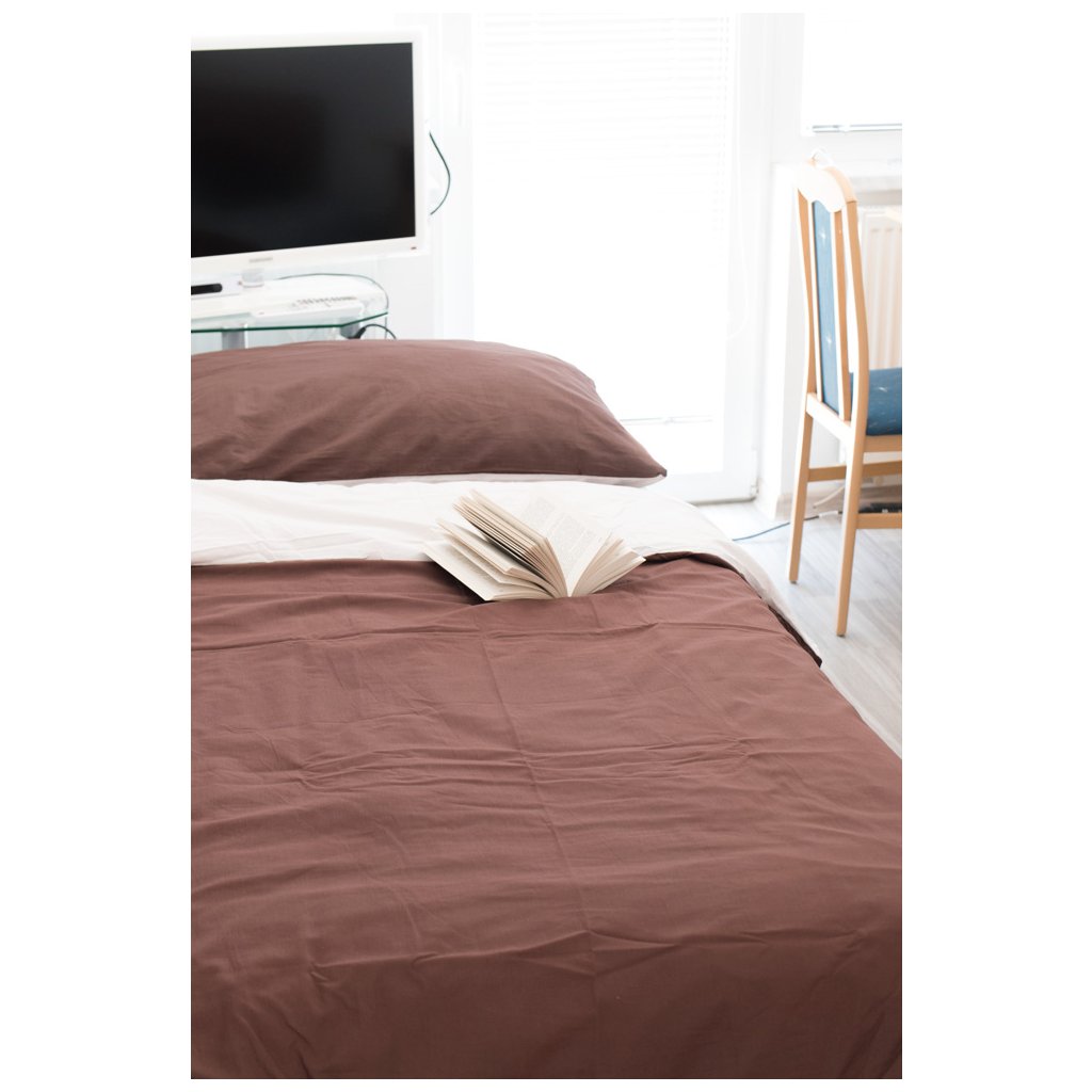Dvoubarevné francouzské bavlněné povlečení v barvě čokoládově hnědé a béžové dodá Vaší ložnici velmi elegantní styl s příjemnou atmosférou. Materiál ze 100% bavlny je hebký, jemný a dobře se udržuje. V tomto povlečení budete rádi usínat. V balení jsou dva kusy povlečení na polštáře a na jednu velkou přikrývku.
