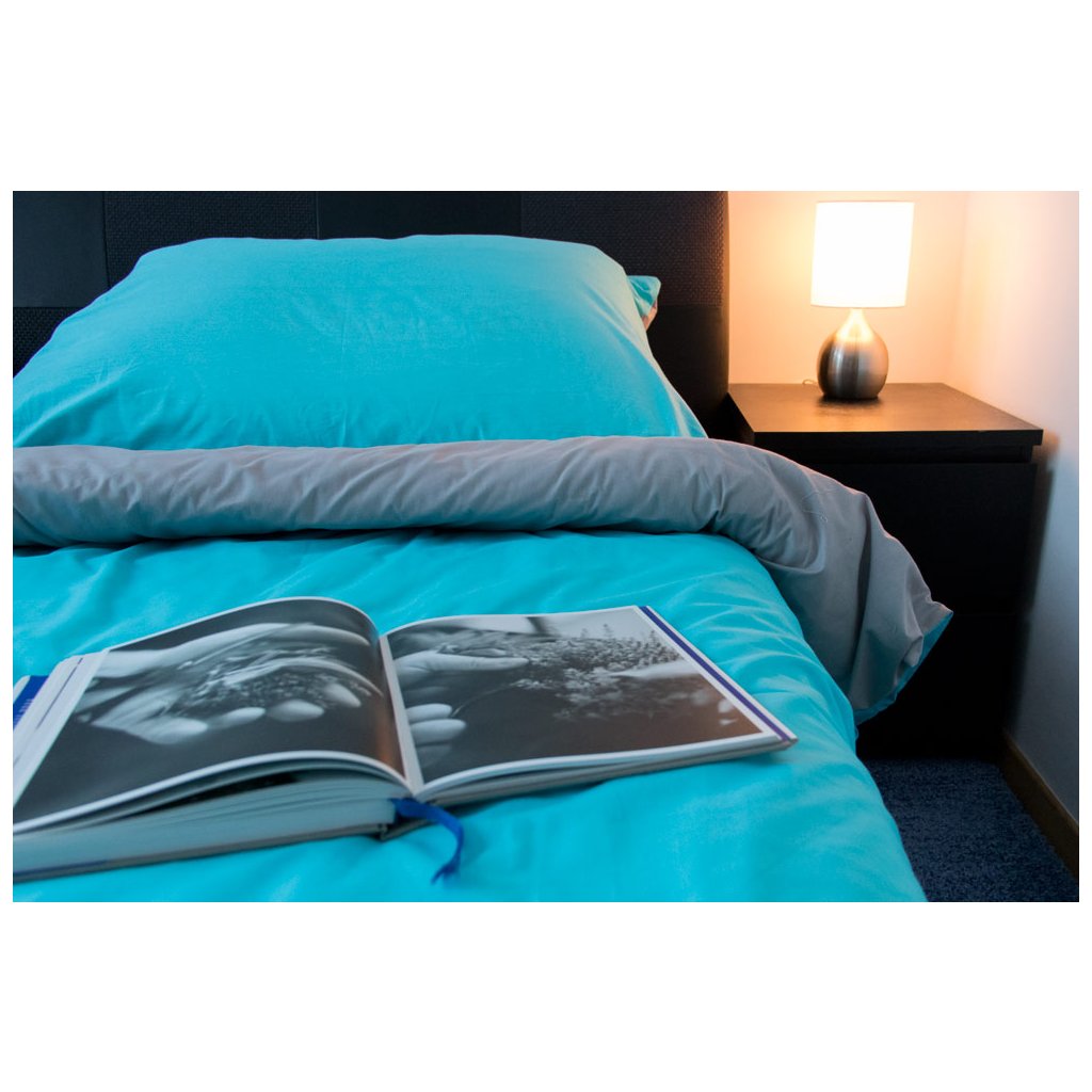 Rozveselte svoji ložnici dvoubarevným francouzským bavlněným povlečením ve svěžích barvách šedá a bledě modré. Modrá barva symbolizuje moře, nebe, inspiruje nás a celkově uklidňuje. Ke kvalitnímu spánku po celou noc rovněž přispěje příjemný bavlněný materiál povlečení.-