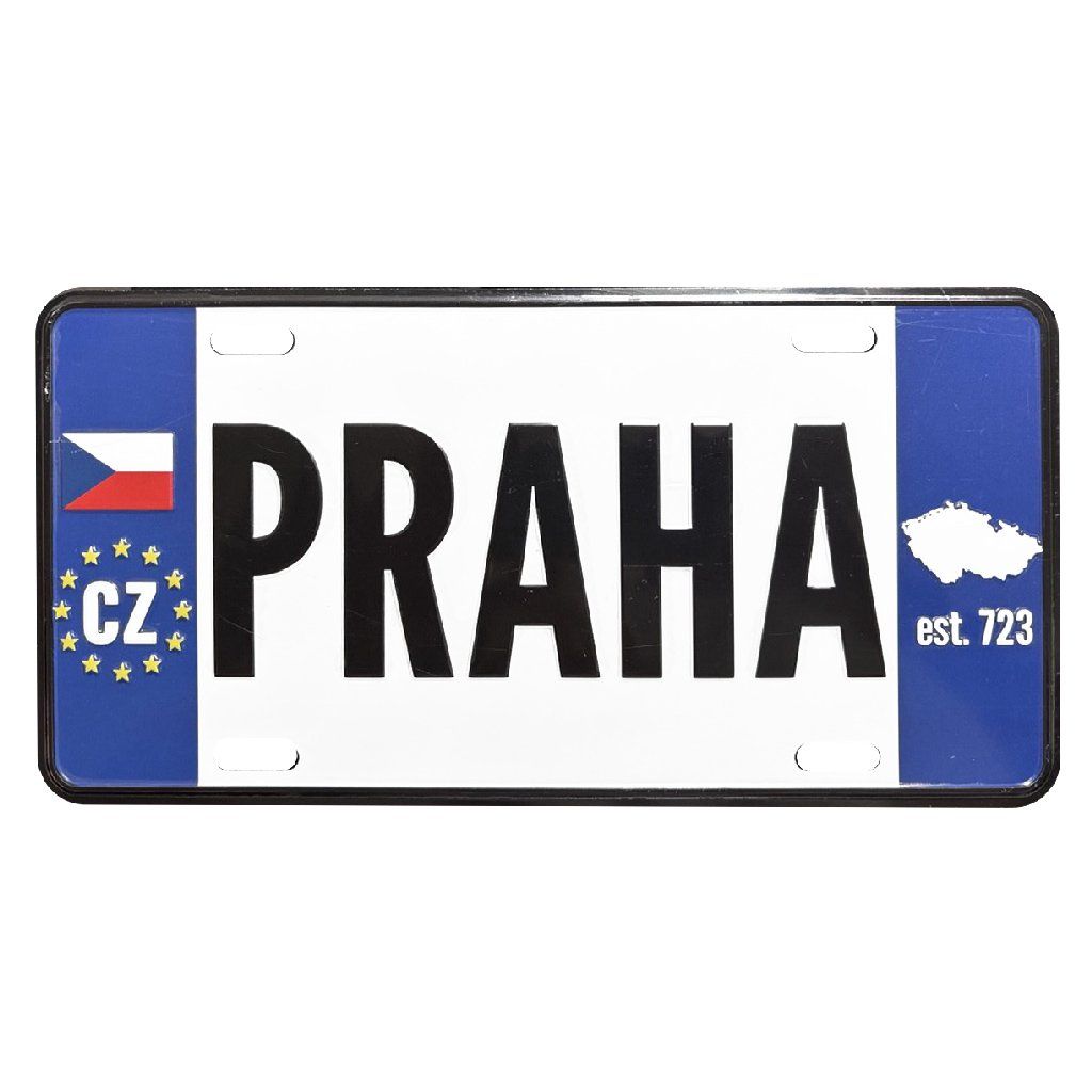 Stylová plechová cedule s nápisem PRAHA je ideálním doplňkem interiéru i originálním suvenýrem. Zaujme designem připomínající registrační značku. Díky praktickému formátu 15 × 30 cm se hodí na zeď, dveře nebo jako dekorace do bytu, kanceláře či restaurace. Skvělý dárek pro všechny, kdo mají rádi Prahu a chtějí si domů přinést její atmosféru.