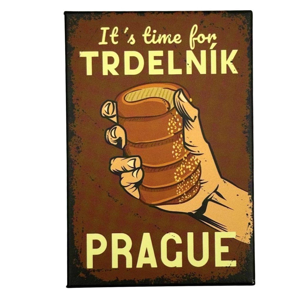 Dekorativní plechový retro magnet lze upevnit na kovové povrchy jako je lednice nebo magnetická tabule. Často se používá jako suvenýr, milý dárek nebo připomíná návštěvu Prahy a tradiční oblíbený sladký trdelník. Magnet dobře drží, unese papírek se vzkazem nebo výkresy malých dětí. Postupně lze vytvářet ze získaných magnetů i hezkou sbírku.