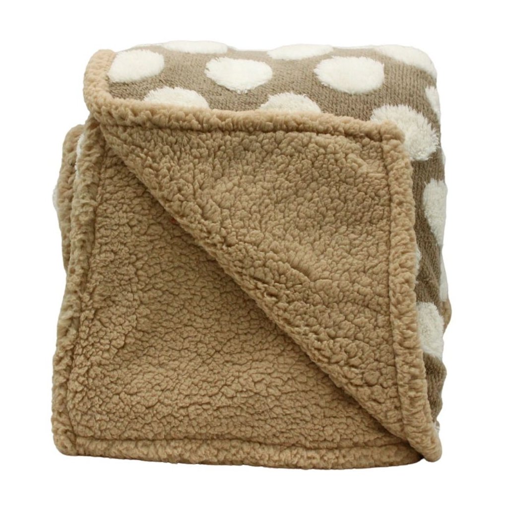 Teplá mikroflanelová deka s beránkem. Hnědá s jacquardovým vzorem s bílými kroužky, 150 x 200 cm