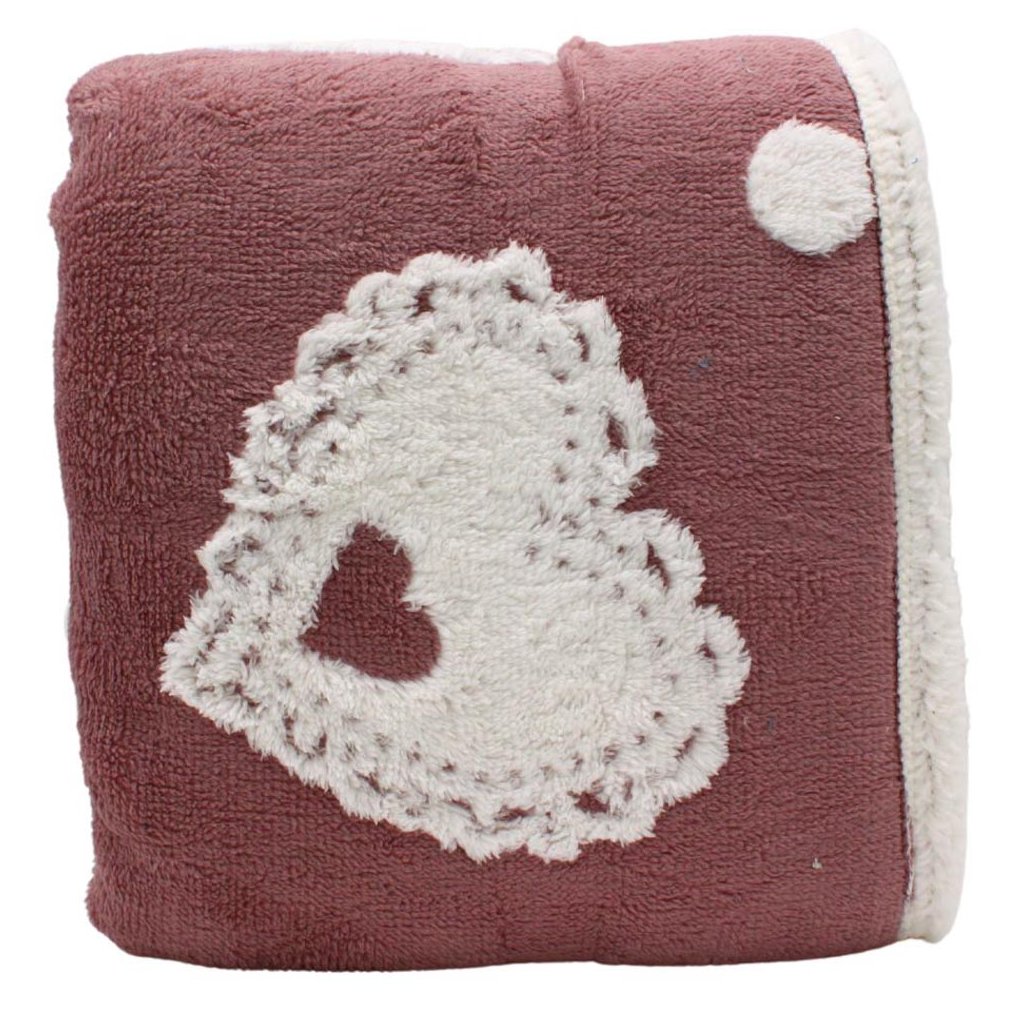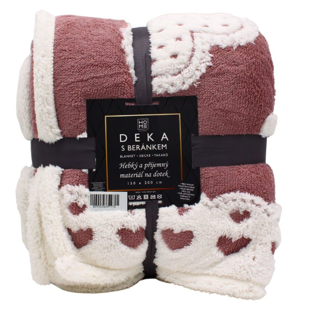 Deka má žakárový vzor bílých srdcí a srdíček na starorůžovém pozadí. Z druhé strany je beránek v bílé barvě. Deka skvěle doplní třeba dívčí pokojíček.