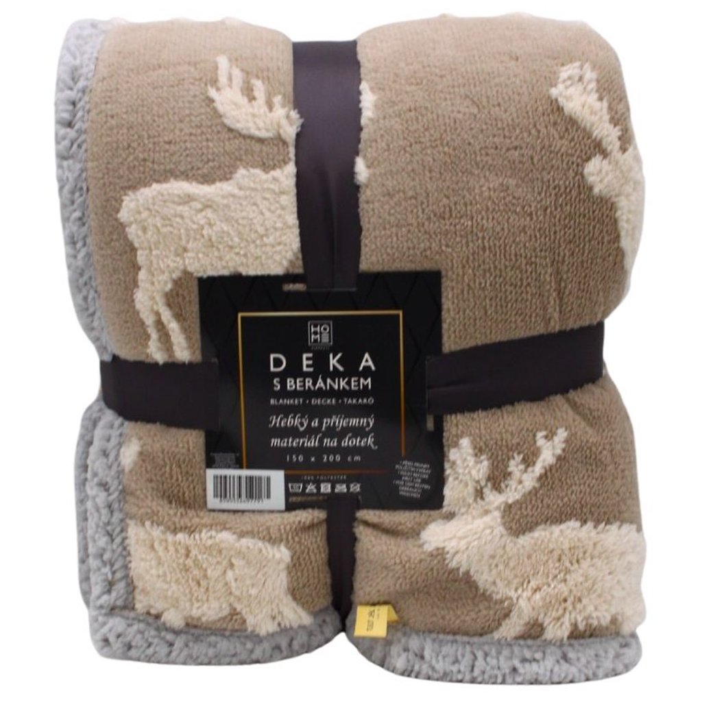 Mikroflanelová deka s beránkem, jacquard vzor Los, béžová Home Elements
