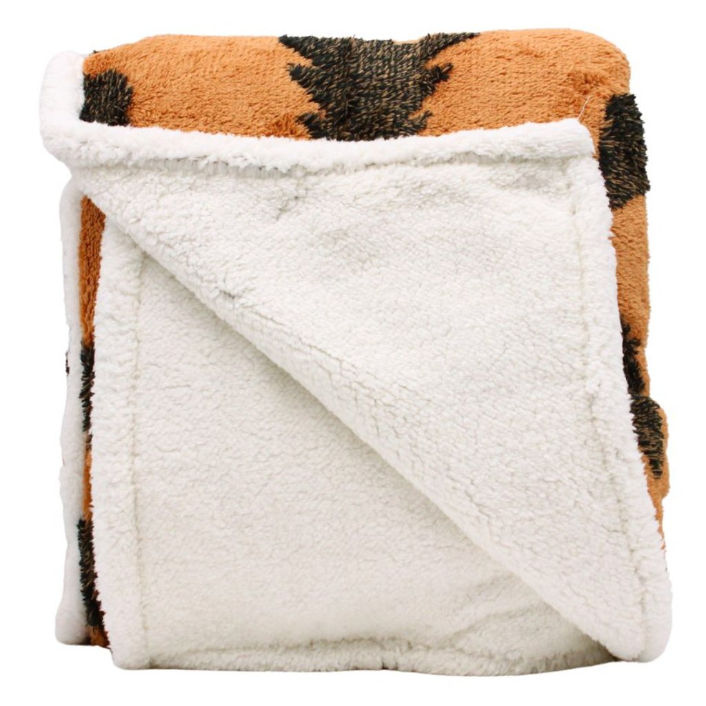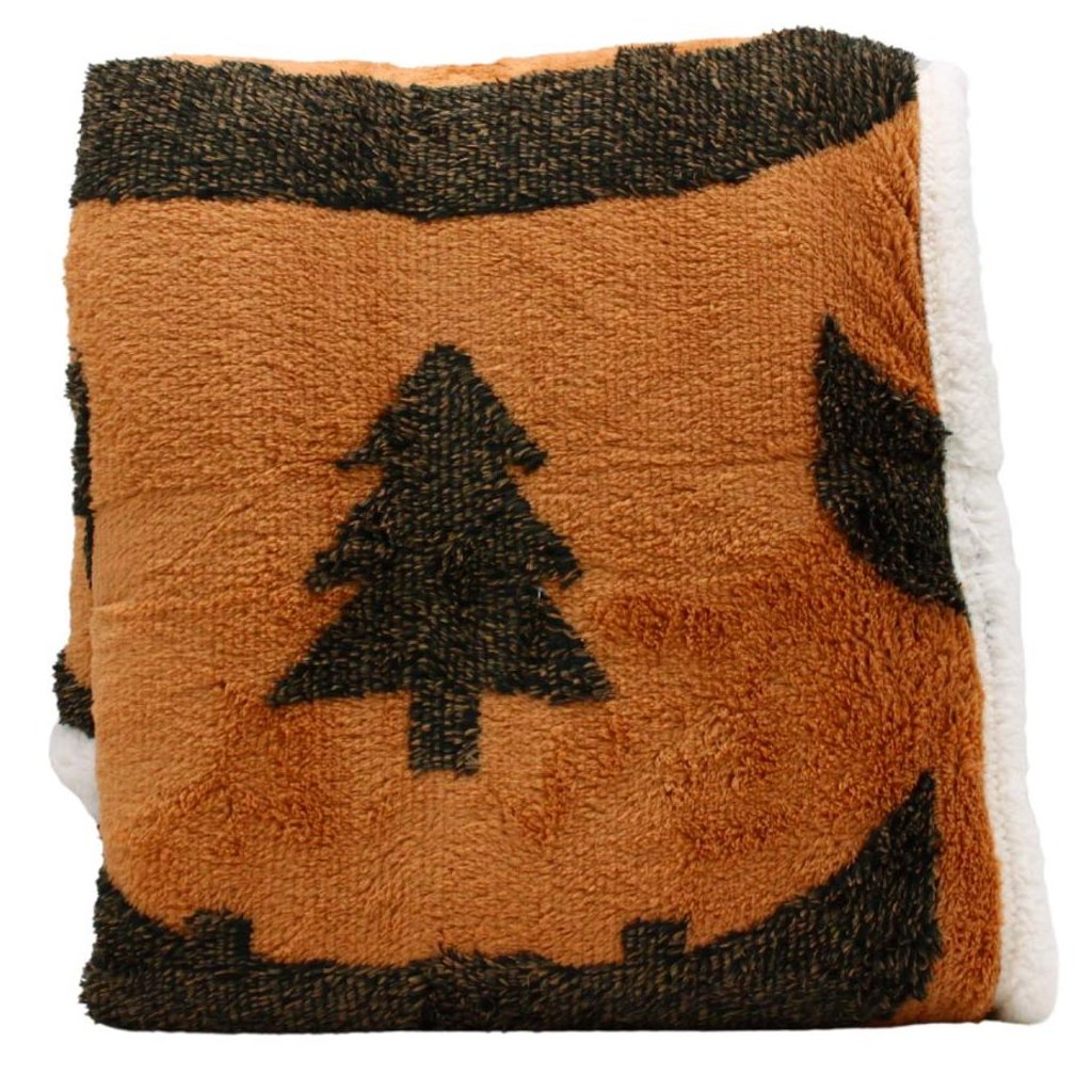 Teplá mikroflanelová deka s beránkem. Zrzavá s jacqurdovým vzorem stromů. 150 x 200 cm