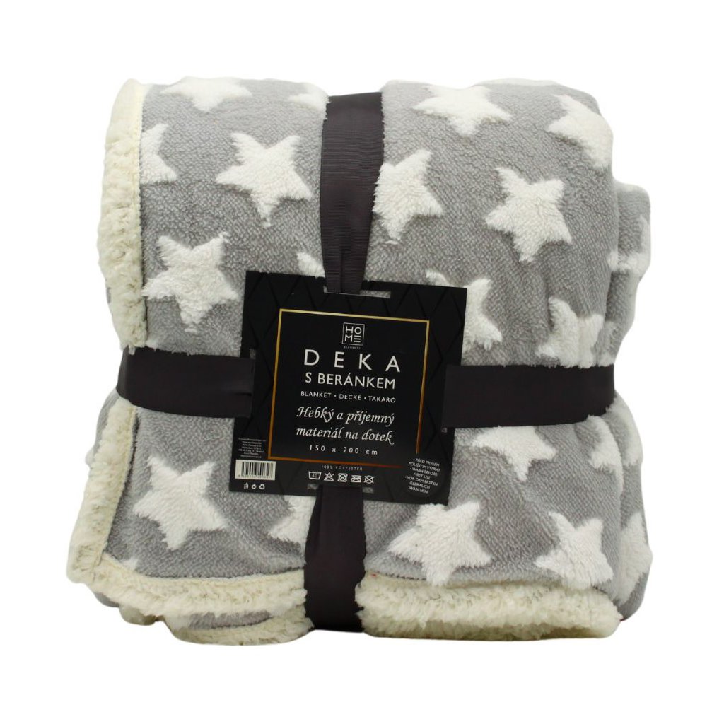 Mikroflanelová deka s beránkem, jacquard vzor Hvězdičky, šedá Home Elements
