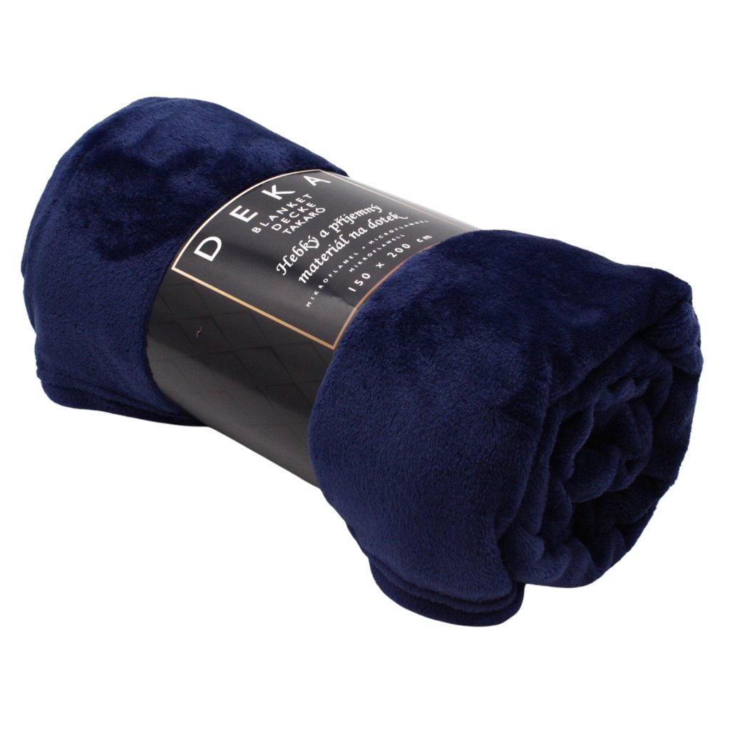 Příjemná, lehká mikroflanelová deka v tmavě modré barvě, rozměr 150 x 200 cm. Materiál 100 % polyester, balení v roli s papírovou páskou.