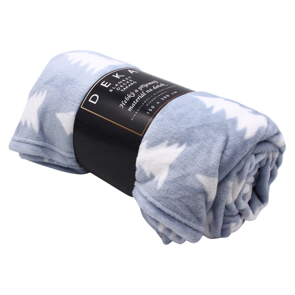 Příjemná, lehká deka z mikroflanelu. Blankytně modrá barva se vzorem bílých stromečků, rozměr 150 x 200 cm.