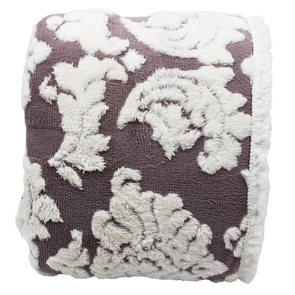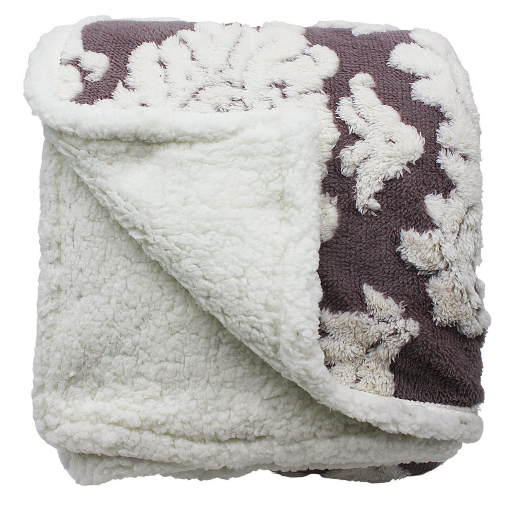 Teplá mikroflanelová deka s beránkem. Šedá s jacqurdovým vzorem květů. 150 x 200 cm