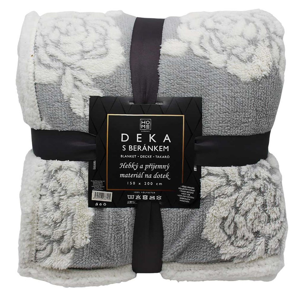 Mikroflanelová deka s beránkem, jacquard vzor Růže, světle šedá Home Elements