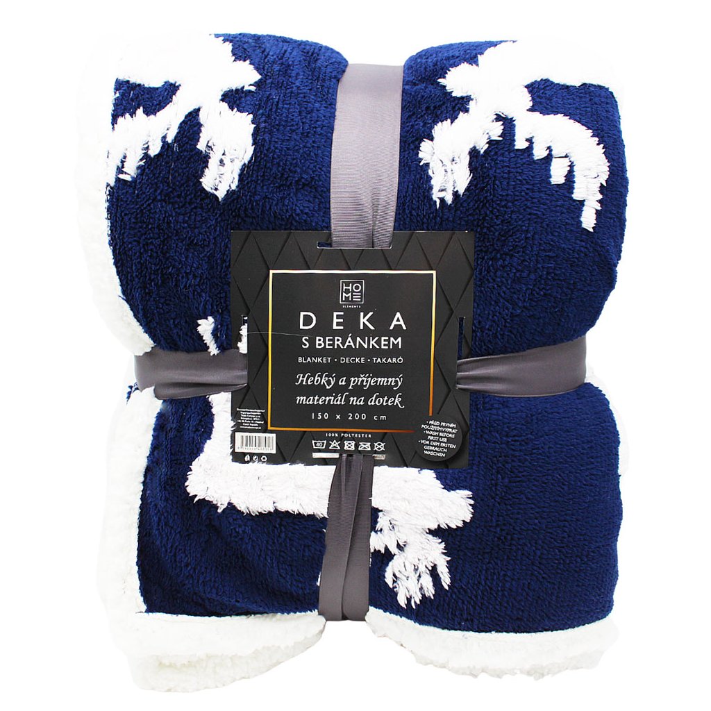 Teplá a hebká deka s beránkem se hodí jako doplněk do každé domácnosti a je nepostradatelná v chladnějším období. Je radost do takové deky se zachumlat. Deka má žakárový vzor bílých na losů na tmavě modrém pozadí. Beránek je v bílé barvě.