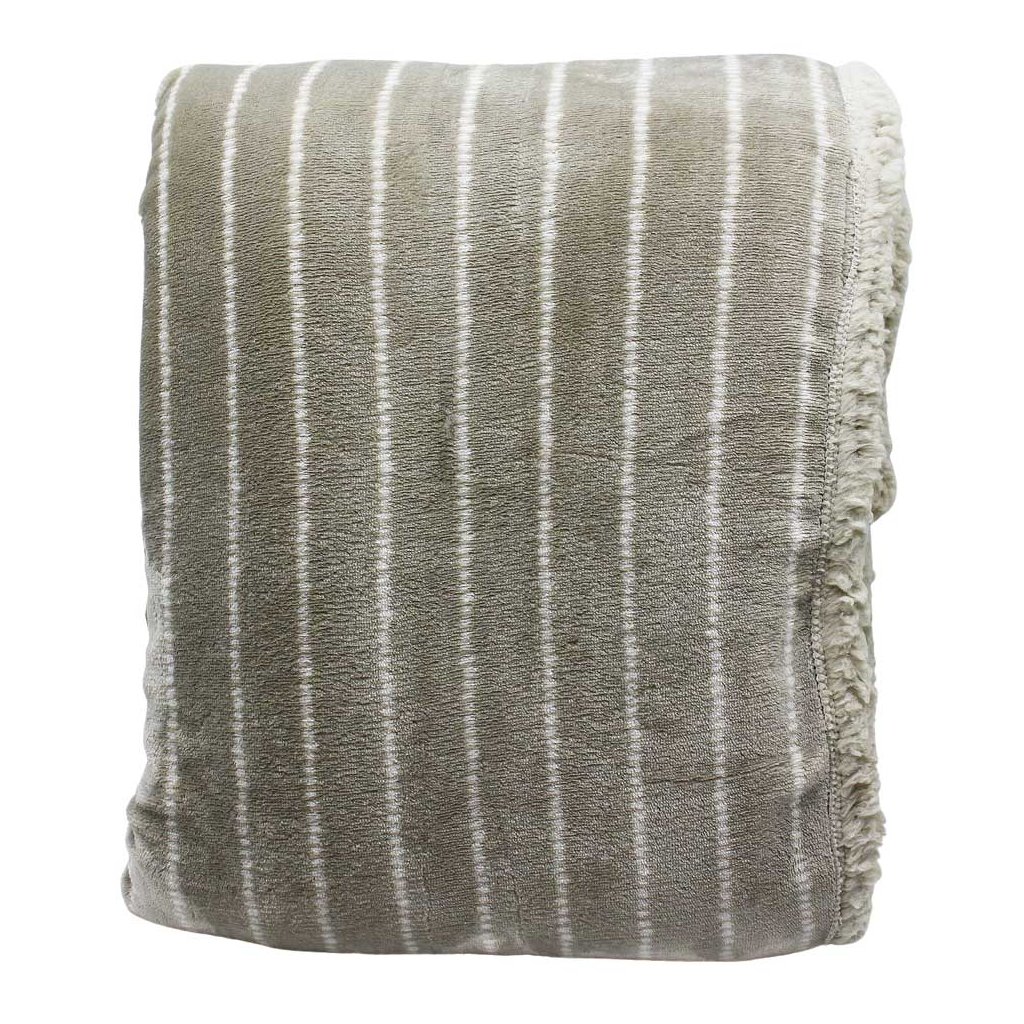 Teplá a hebká deka s beránkem v jemné světlo šedé barvě s proužkem, 155 x 200 cm