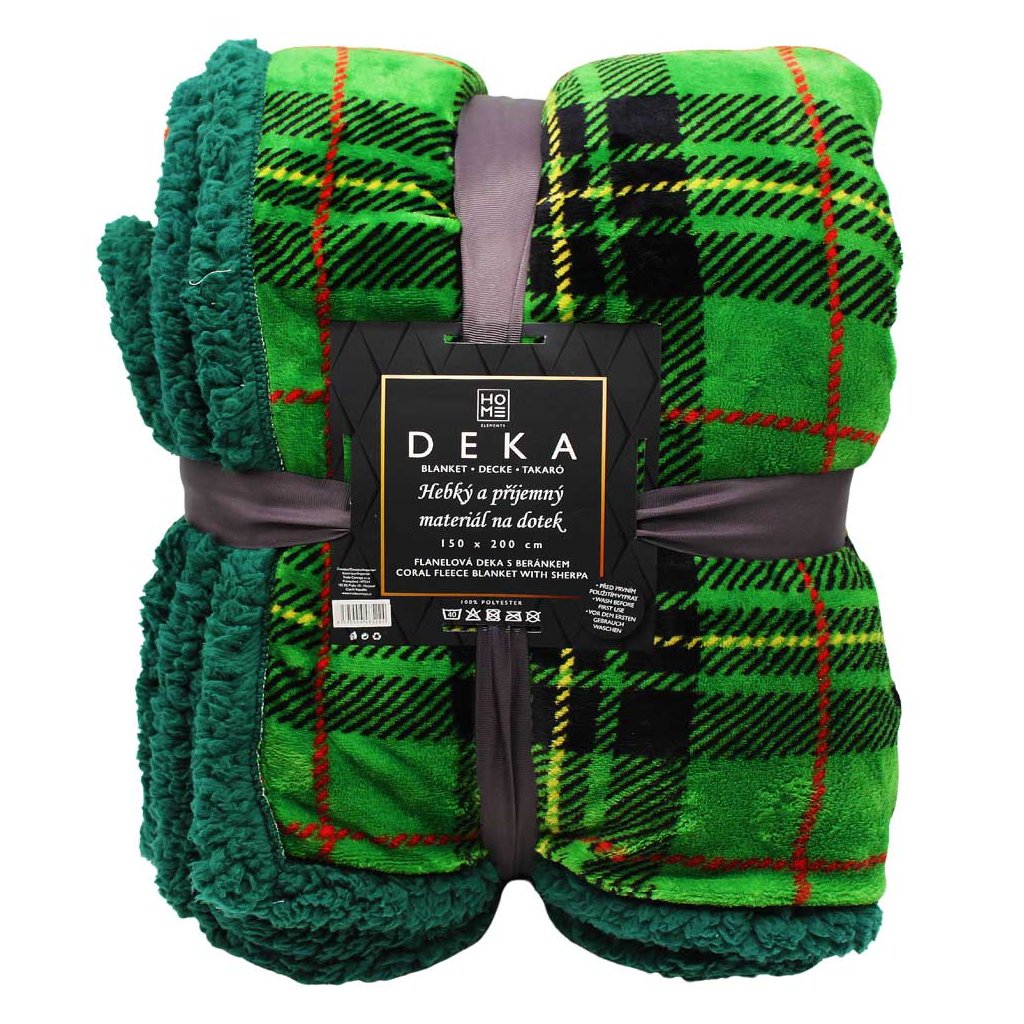 HOME ELEMENTS Flanelová deka s tmavě zeleným beránkem, zelená, 150 x 200 cm Home Elements