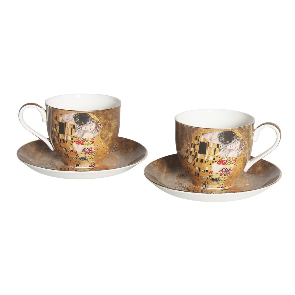Sada dvou porcelánových hrnků s podšálky s motivem nejslavnějšího obrazu Polibek z kolekce Gustava Klimta.