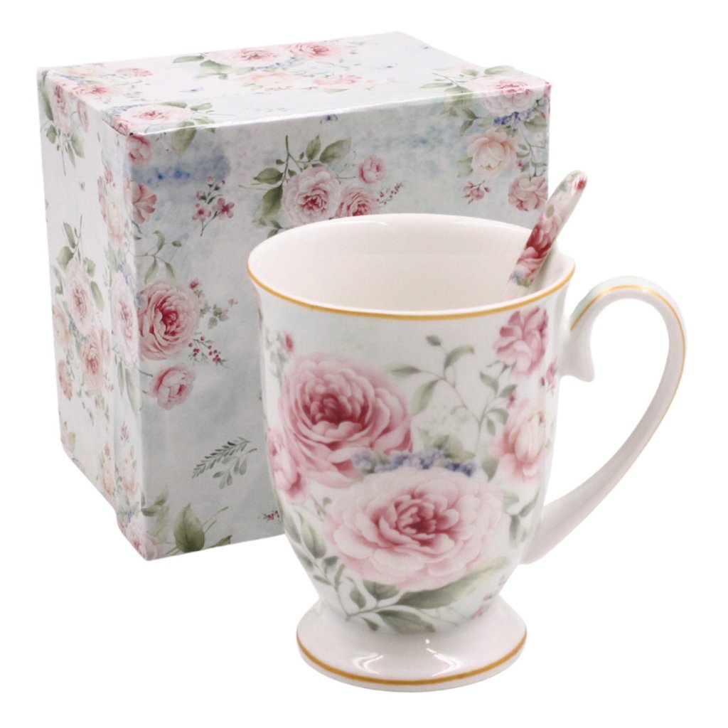 Porcelánový hrnek se lžičkou, Růže Home Elements