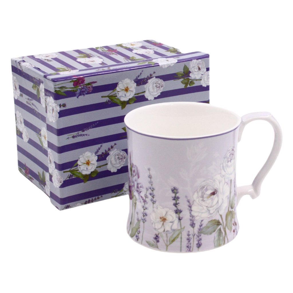 Porcelánový hrnek s dekorem levandule, objem 360 ml, v dárkové krabičce