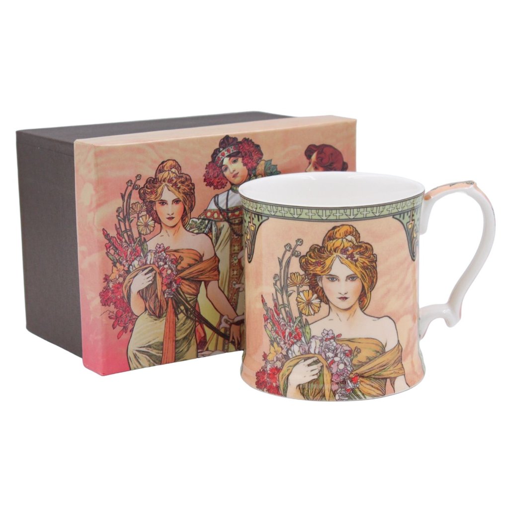 Známé dílo malíře Alfonse Muchy Čtyři roční období můžete obdivovat na porcelánovém hrníčku. Hrnek v klasickém tvaru je vhodný na čaj, kakao, horkou čokoládu. Hrnek bude ozdobou každého stolu.