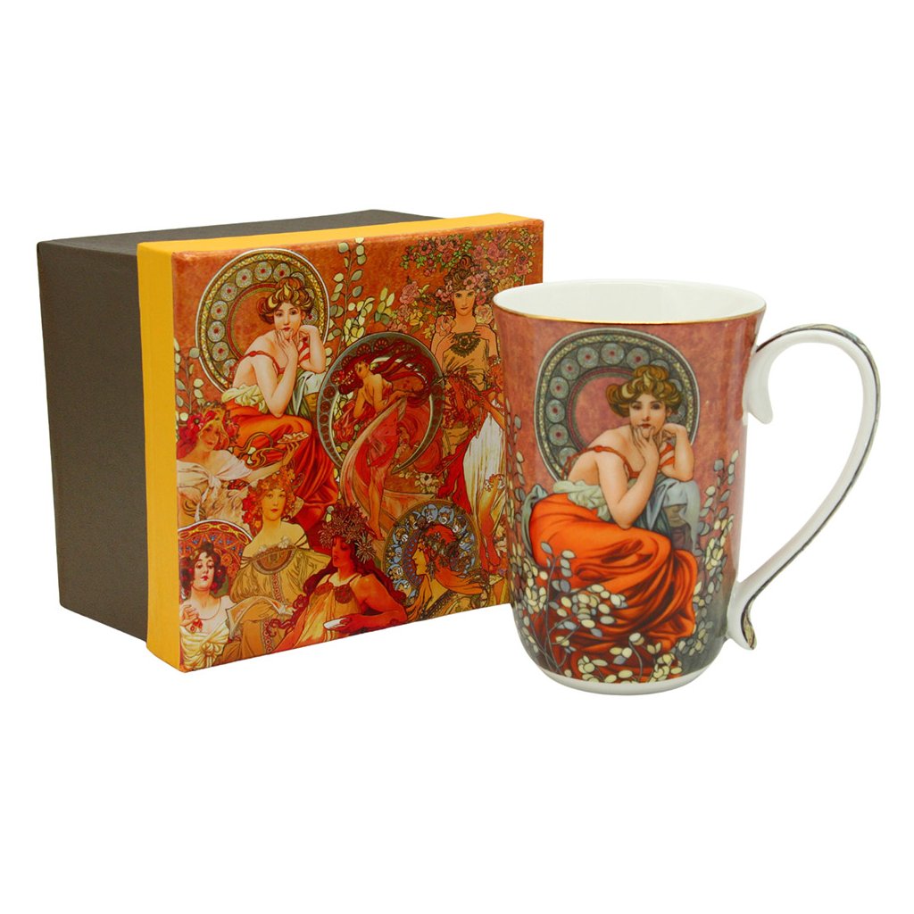 Exkluzivní dílo malíře Alfonse Muchy na porcelánovém hrnku, který se skvěle hodí na čaj, vídeňskou kávu nebo třeba horkou čokoládu.