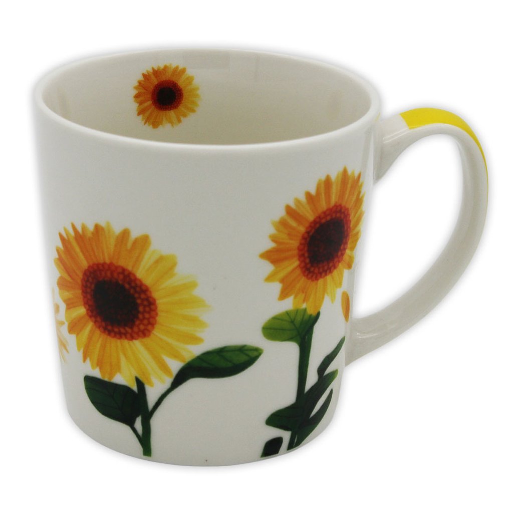 Větší porcelánový hrnek se žlutými květy slunečnice rozzáří váš den.
