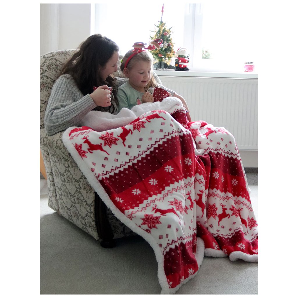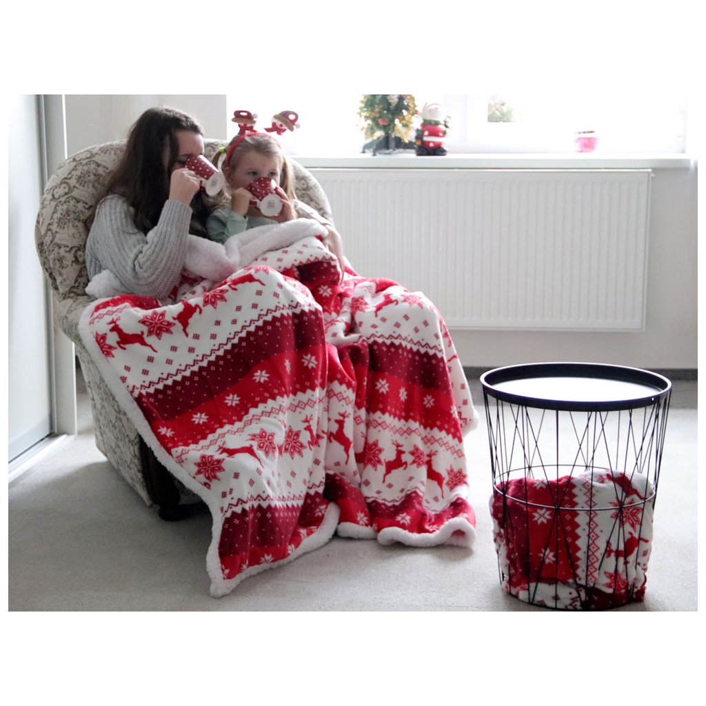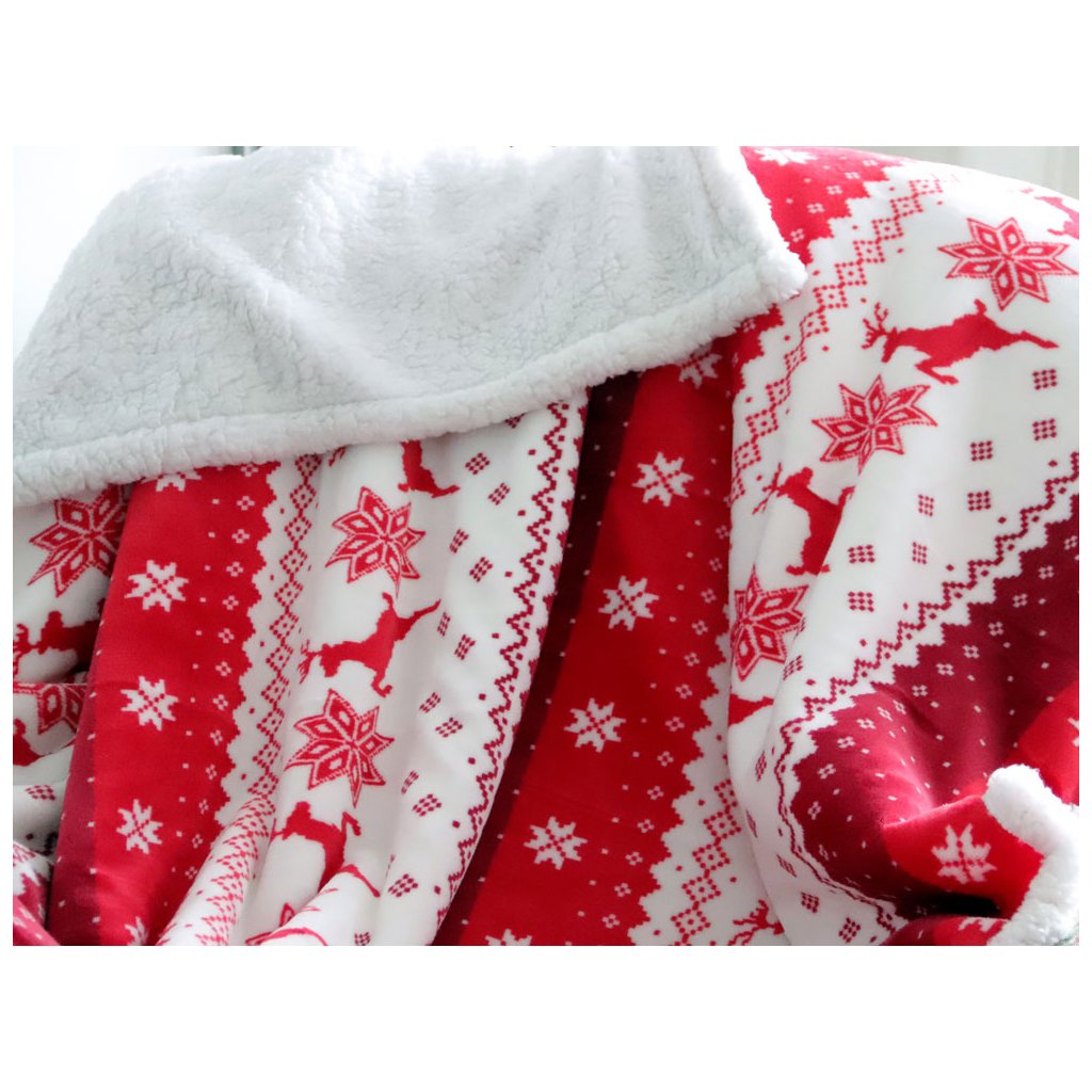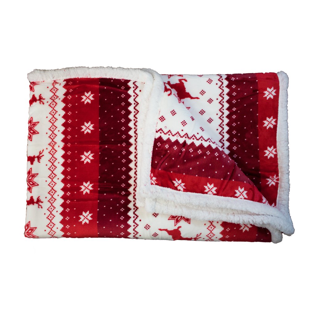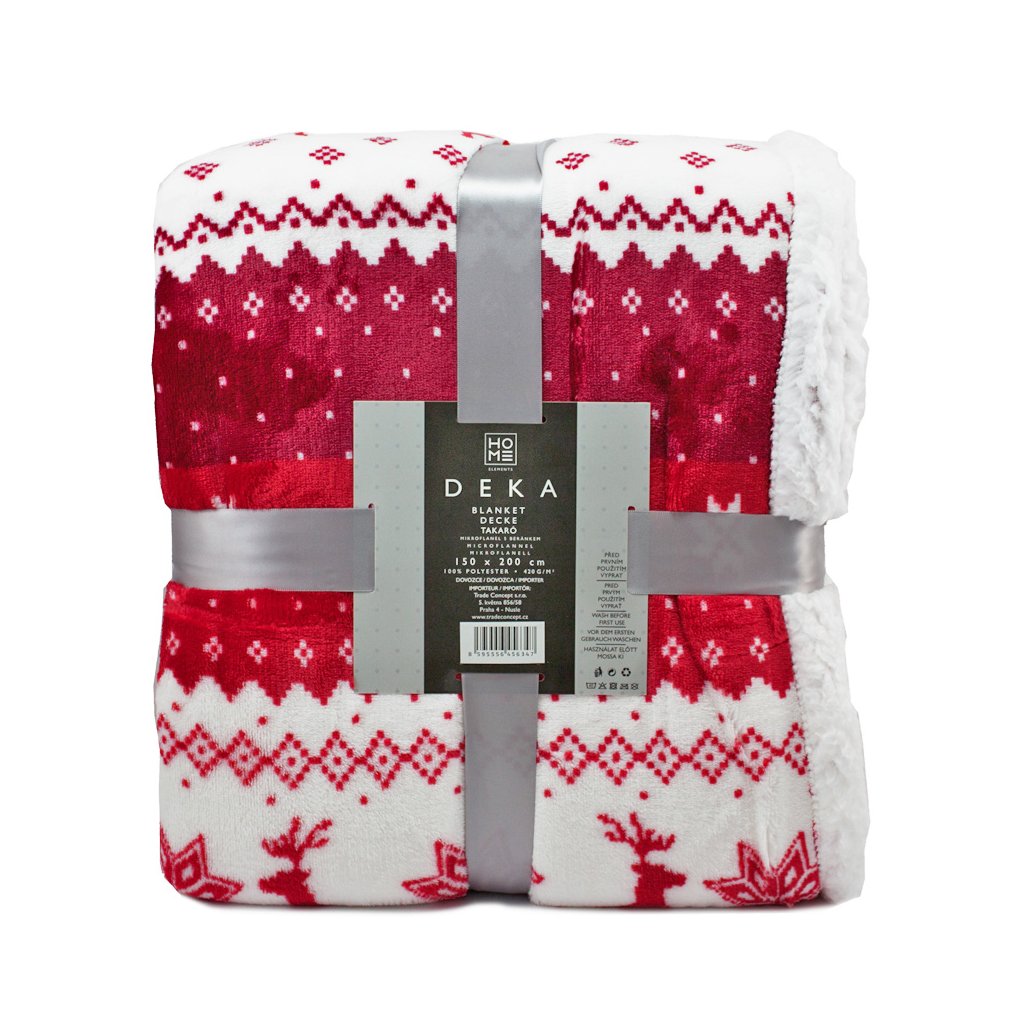 Mikroflanelová deka s beránkem, vzor Sobíci, červená a bílá Home Elements