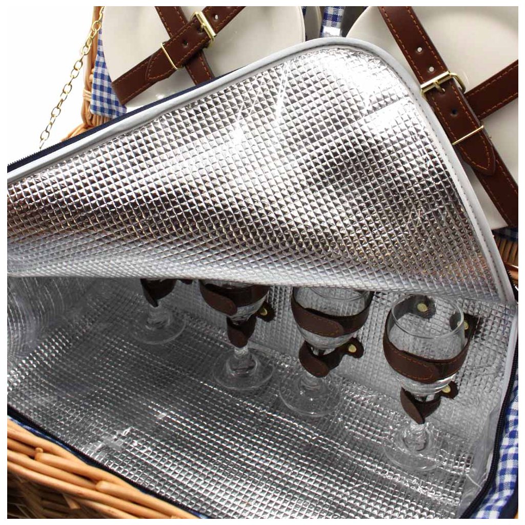 Proutěný koš na piknik pro 4 osoby pro skvělou snídani, oběd nebo třeba večeři v trávě. Koš je skvěle připraven na pořádný piknik. Uvnitř najdete vše co potřebujete: talíře, sklenice i vývrtku na víno. Užijte si příjemné chvíle s rodinou či přáteli.