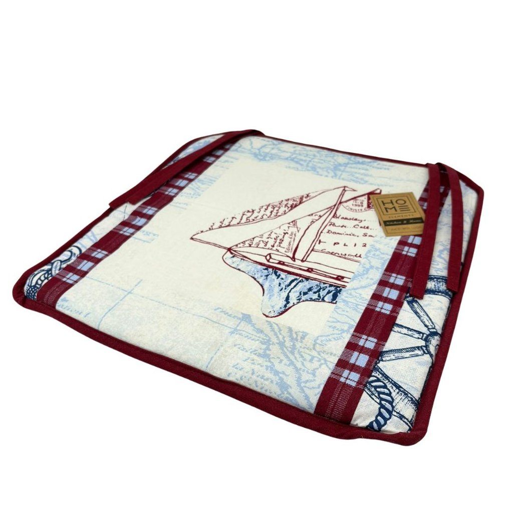 Čtvercový bavlněný podsedák na židli. Dodejte svému domovu námořnický styl s tímto podsedákem od Home Elements. Elegantní vzor plachetnic a kormidla přináší pohodu přímo do vašeho interiéru nebo na zahradu.