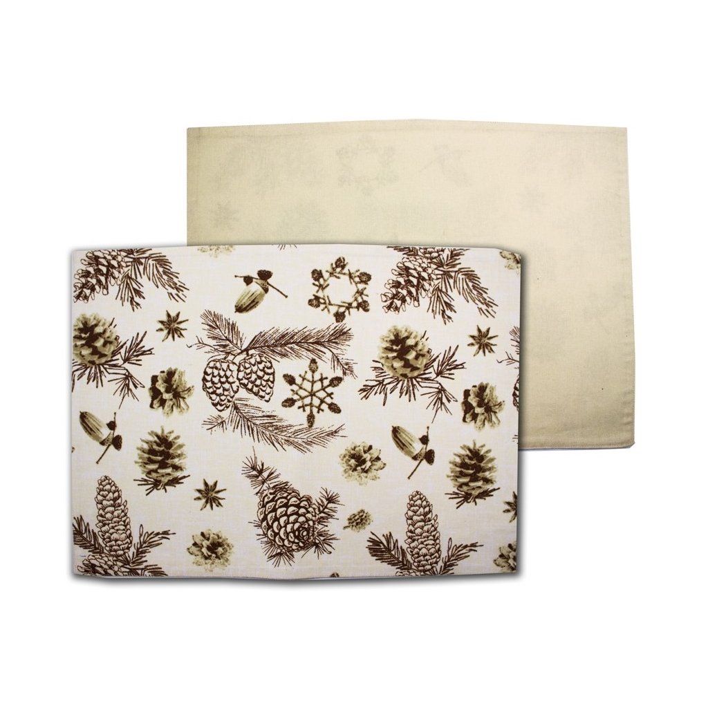 - z jedné strany čistě béžové, z druhé strany s motivem zimních šišek